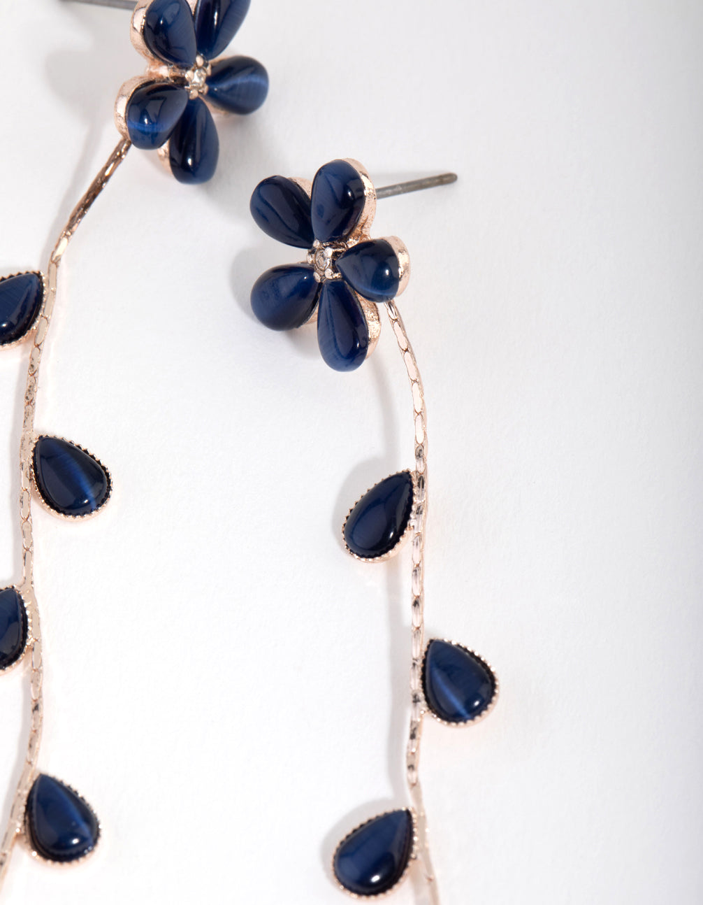 Add a touch of glamour to your ensemble with a pair of fashion earrings. These earrings boast a dangling vine drop adorned to a blue flower stud. Pair with your favourite evening outfit for an elevated look!