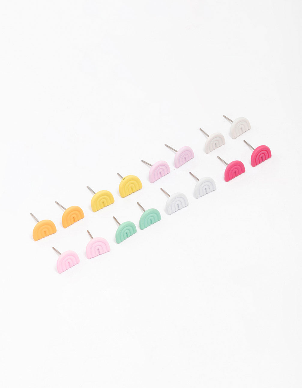 Create the ear stack of your dreams with this pack of silver-toned earrings. This earring pack includes eight sets of earrings, each adorned with rainbow motifs for a pop of colour.