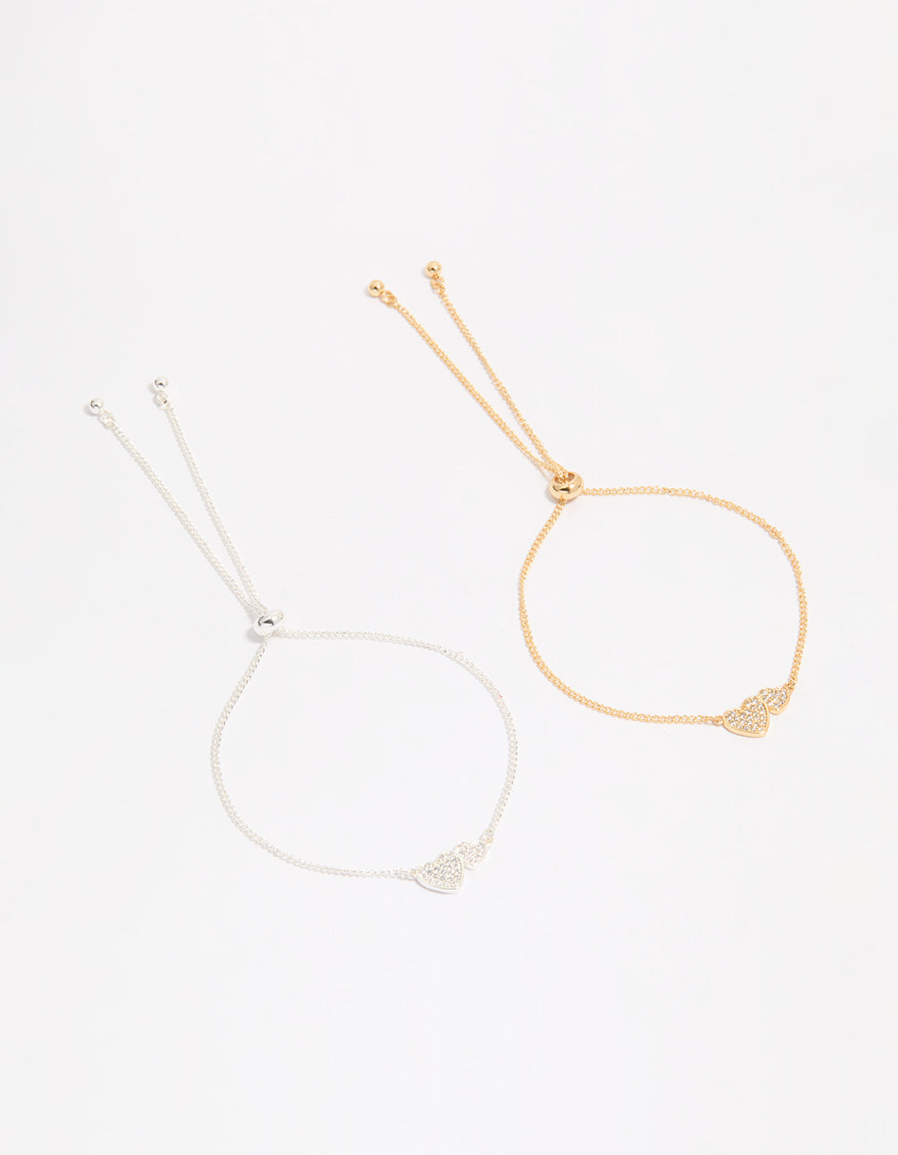 Mixed Metal Cubic Zirconia Linked Hearts Toggle Bracelets 2-Pack Mixed Metal Cubic Zirconia Linked Hearts Toggle Bracelets 2-Pack Mixed Metal Cubic Zirconia Linked Hearts Toggle Bracelets 2-Pack