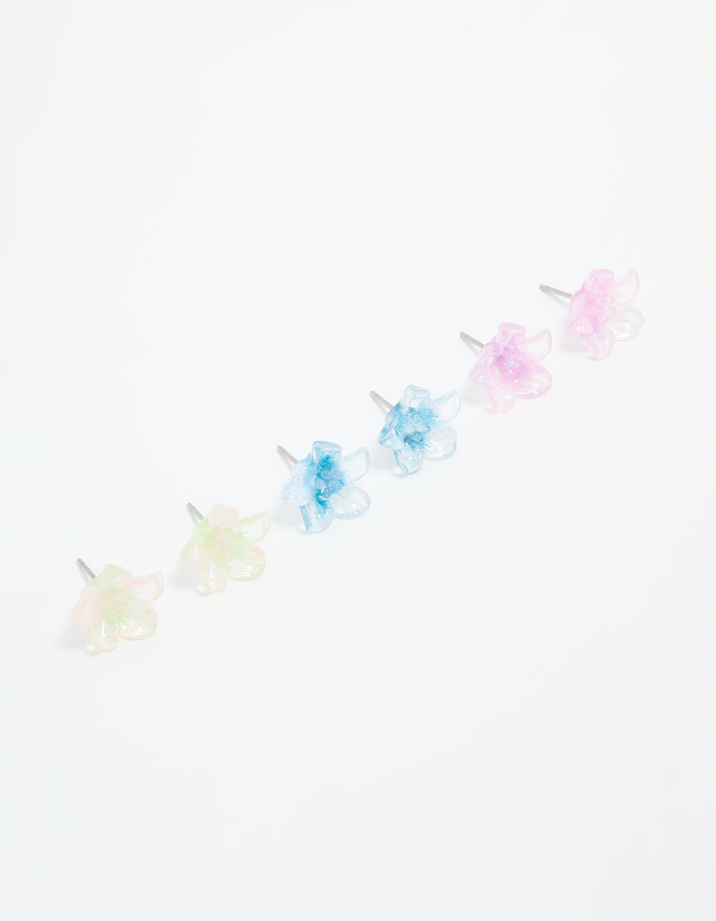 Multicoloured Acrylic Flower Stud Earrings 3-Pack