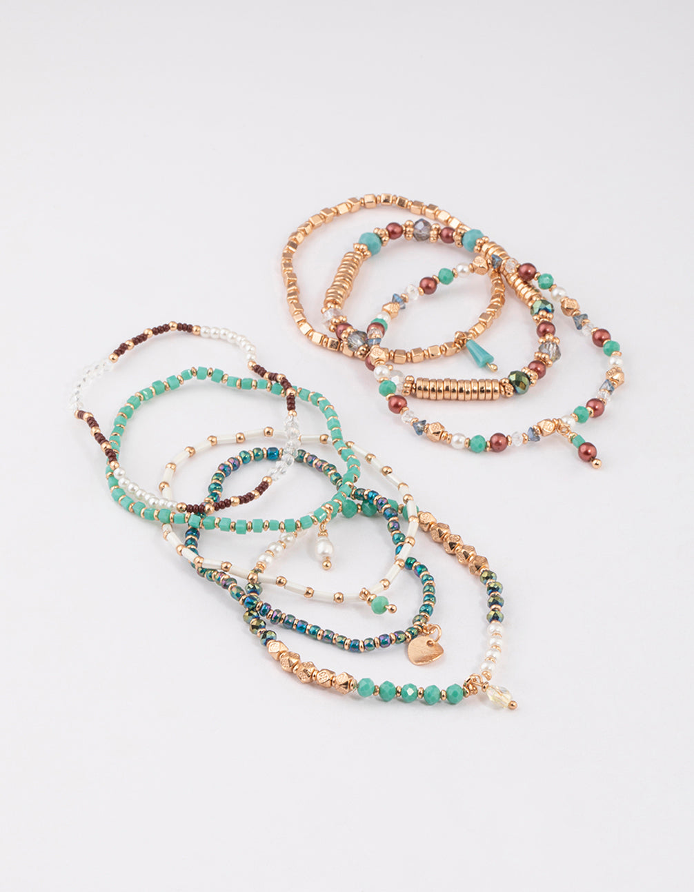Gold Mixed Facet Beaded Bracelet 8-Pack