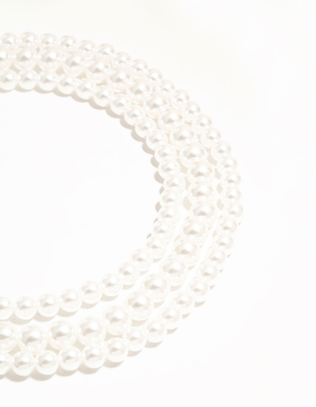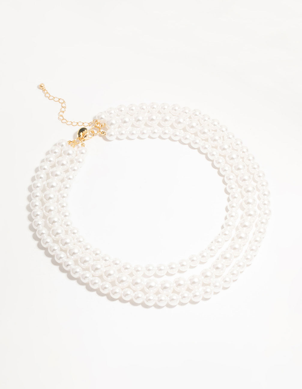 Add some elegance to your style with this gorgeous pearl necklace. With three rows of pearls, it's perfect for any occasion. Dress it up or down, and get ready to look effortlessly glam.