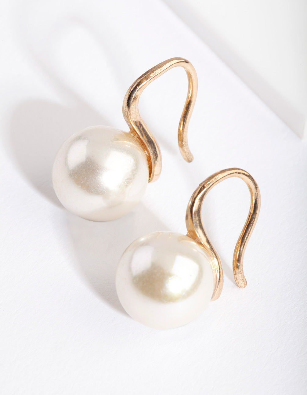 Round-out your collection with classic gold-toned essentials, perfect for dressing up any outfit. This pair of earrings feature a faux pearl hook design.
