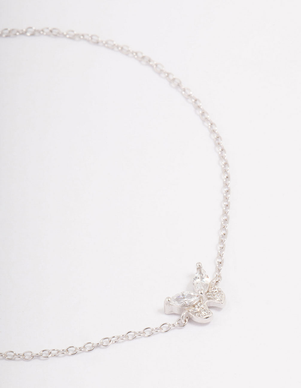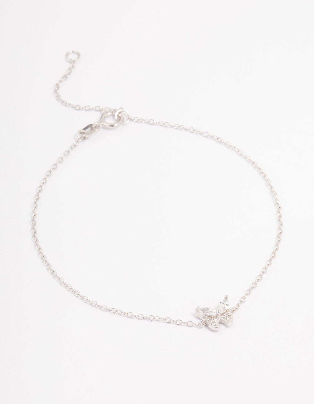 This dainty chain bracelet features a cubic zirconia encrusted butterfly motif. Perfect for styling in your everyday stack.