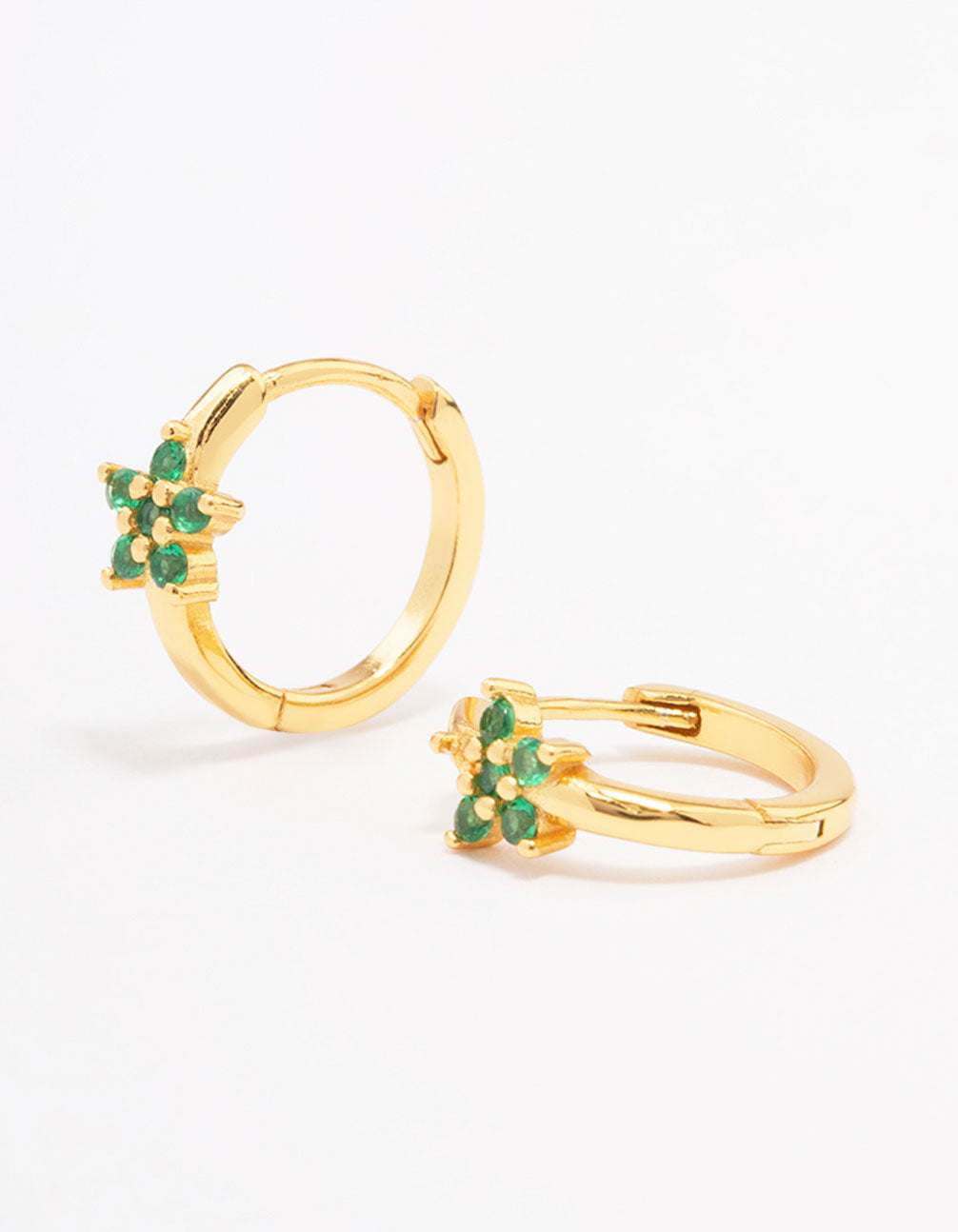 Gold Plated Sterling Silver Cubic Zirconia Flower Huggie Earrings