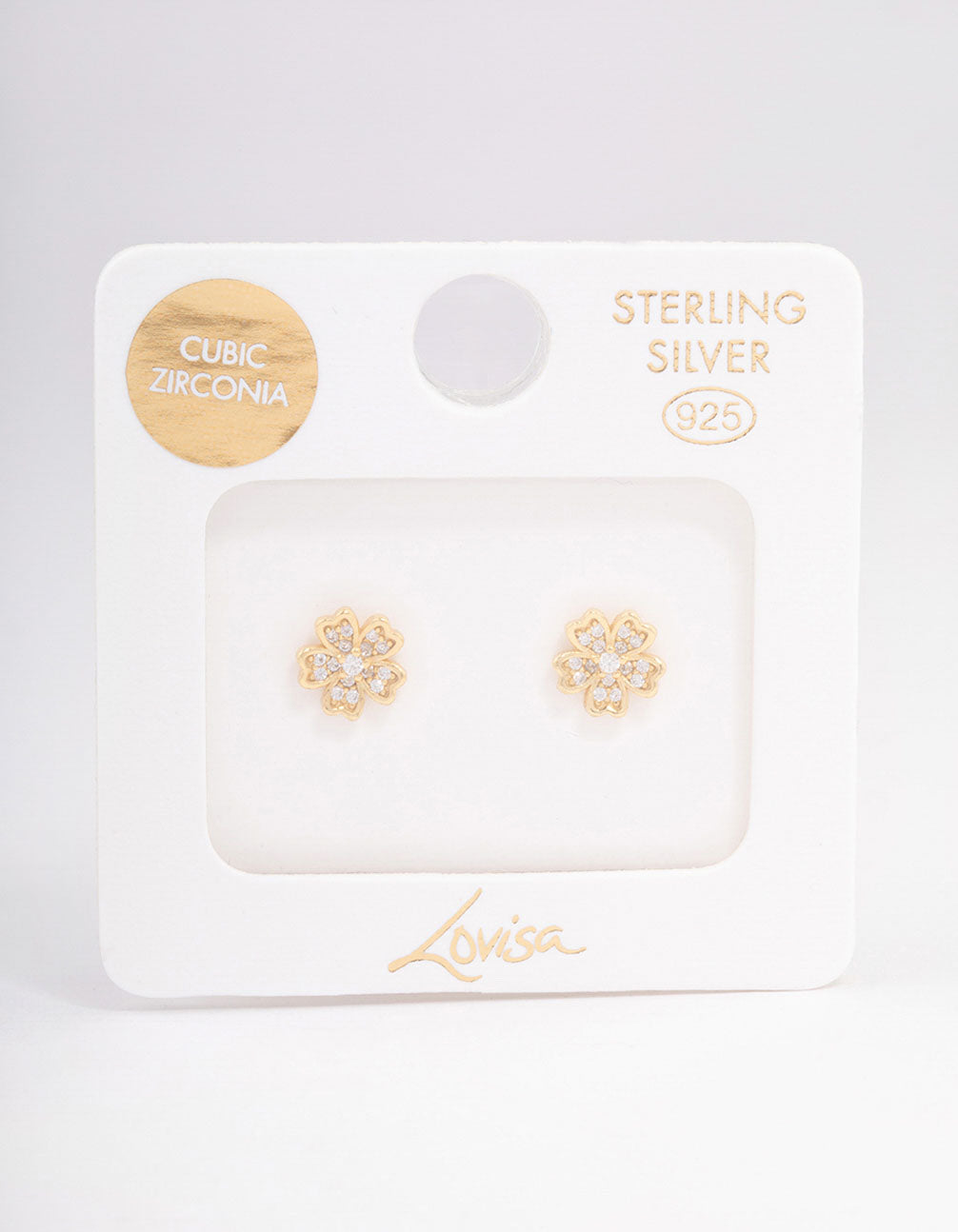 Gold Plated Sterling Silver Cubic Zirconia Flower Stud Earrings