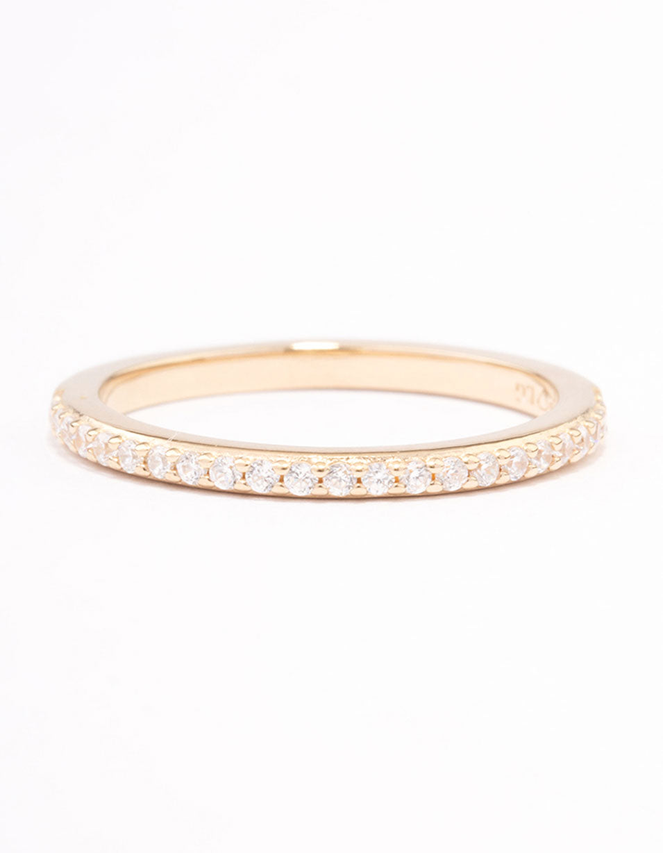 This gold plated sterling silver ring features a paved, cubic zirconia embellished band for a glamorous finish to your stack.