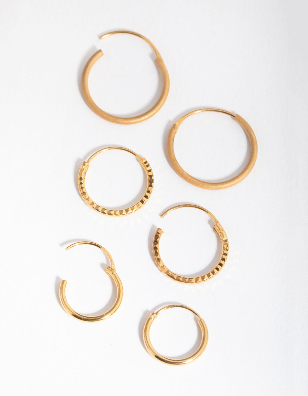 Gold Plated Sterling Silver Mix Texture Hoop Pack Earring