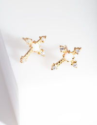Gold Plated Sterling Silver Synthetic Opal Cross Stud Earrings