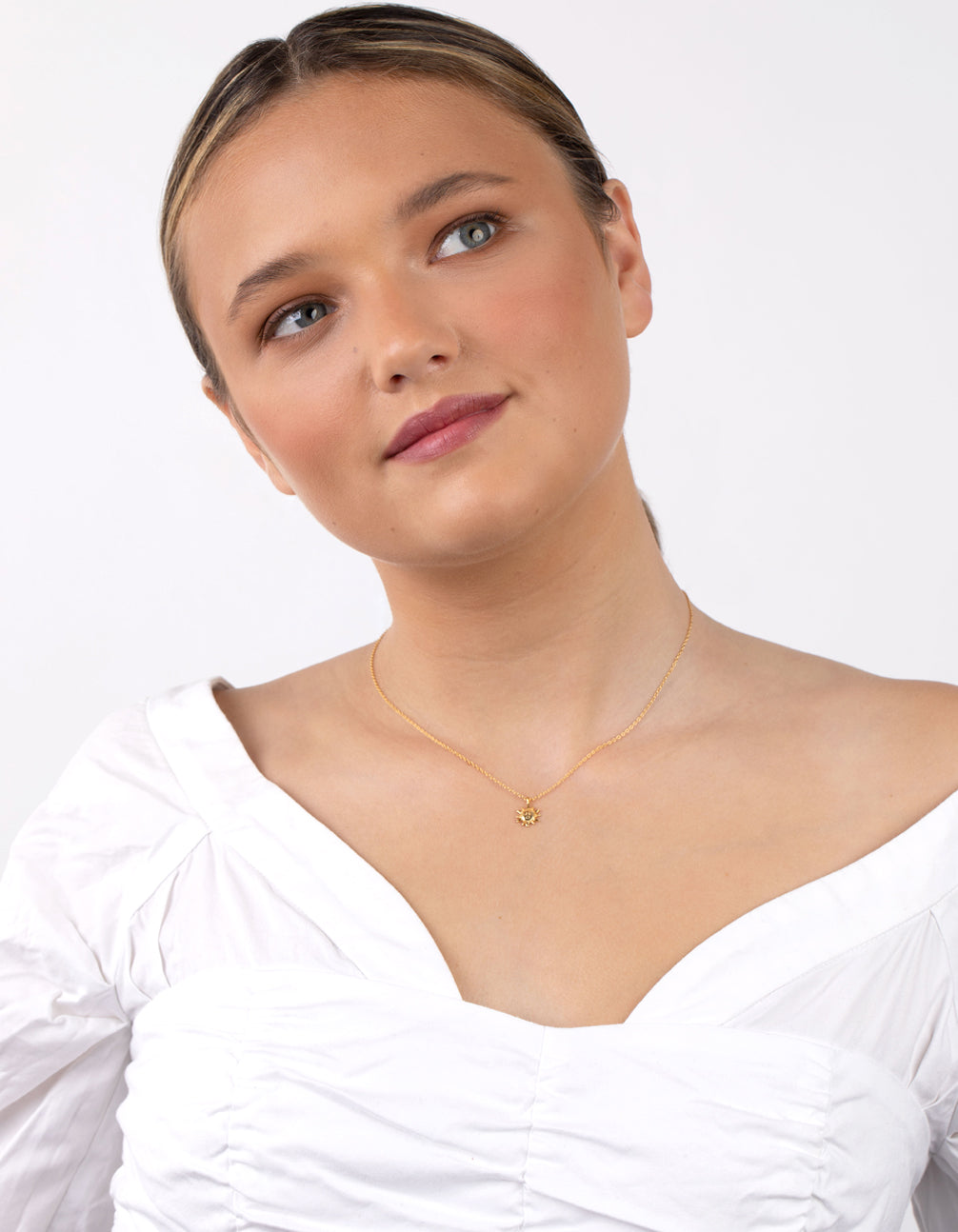 This gold-plated sterling silver necklace comes with a sunshine pendant.