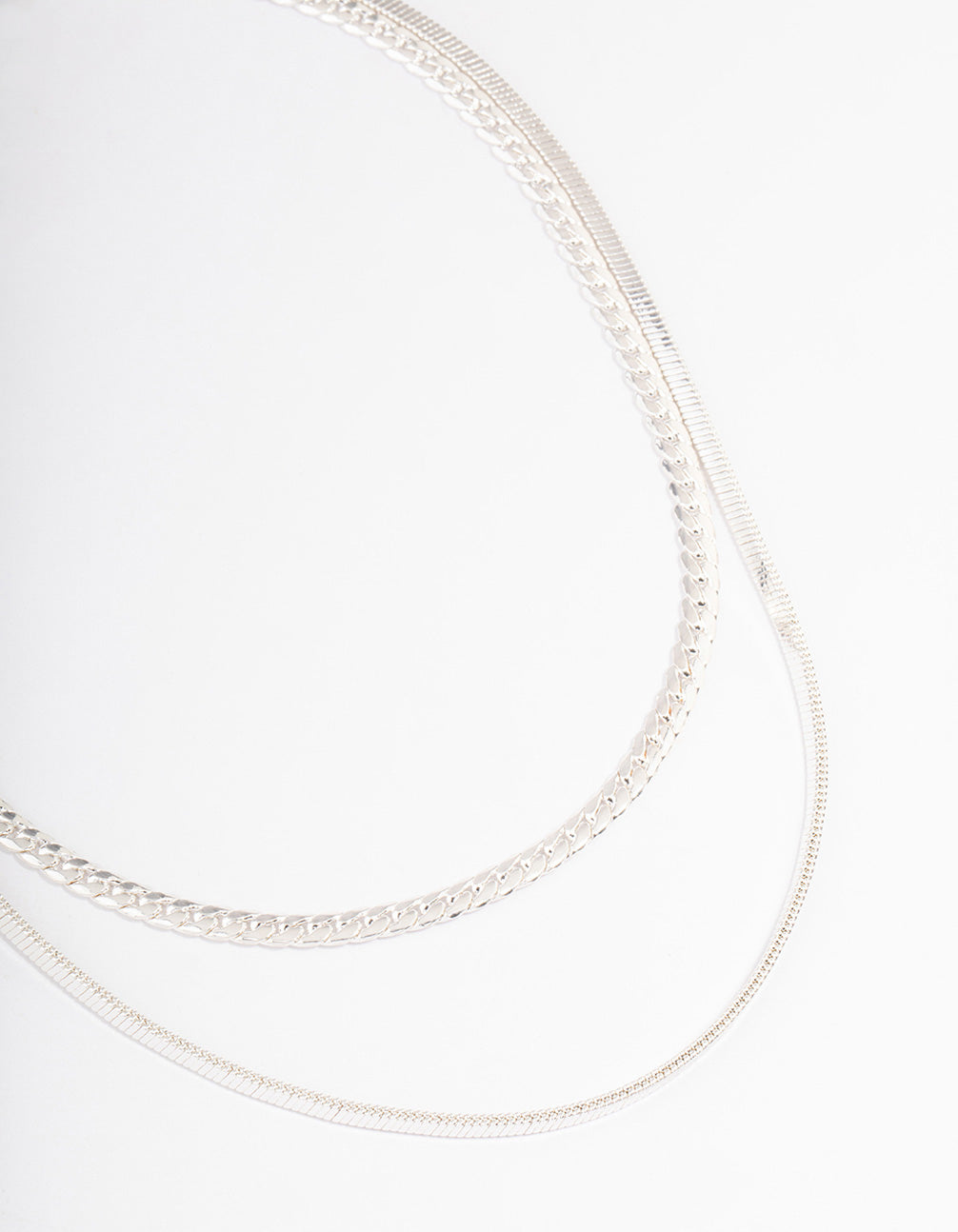 Silver Plated Herringbone & Snake Chain Layered Necklace