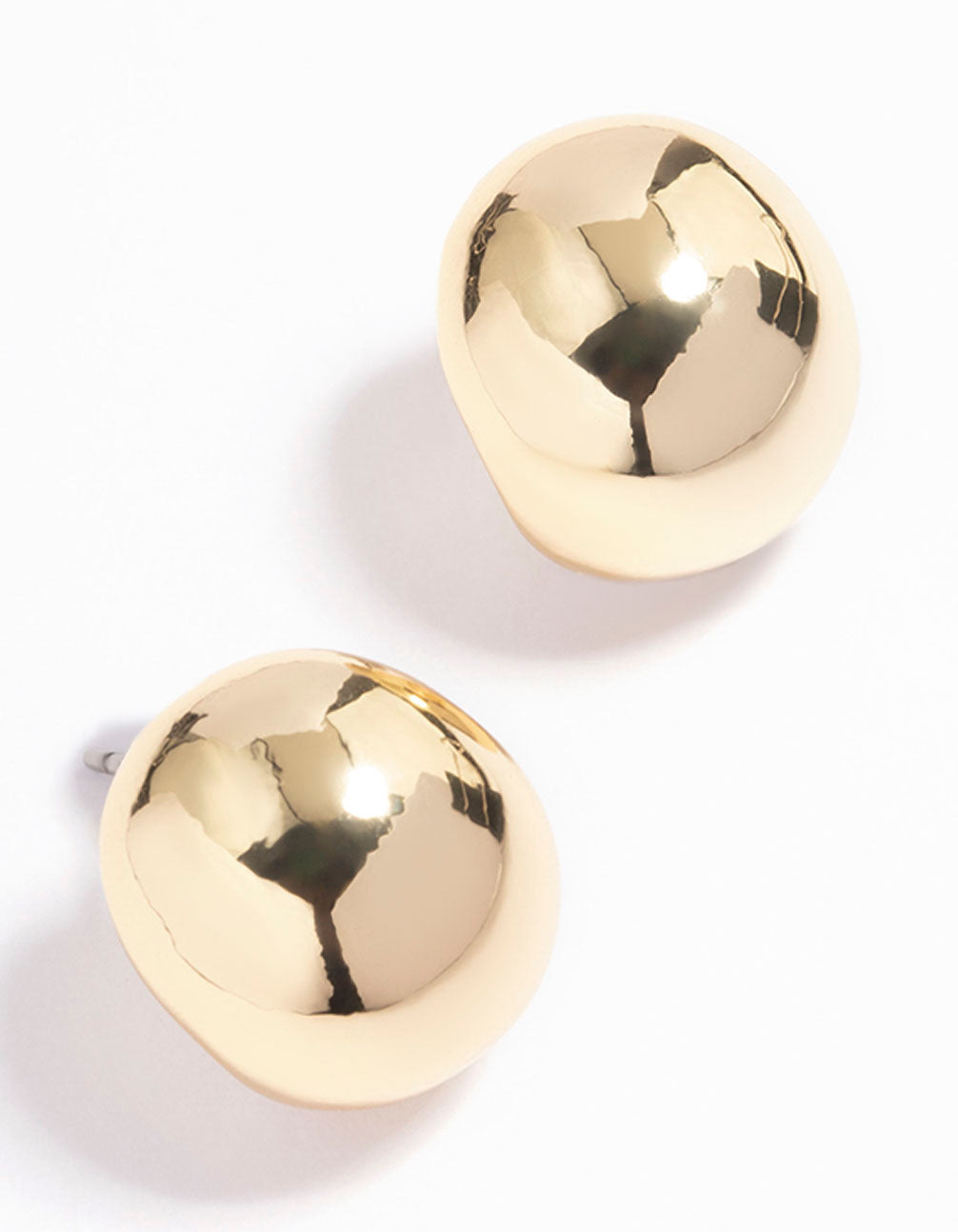 These stud earrings are plated with real gold and feature mini round ball motifs for a simple and modern finish.