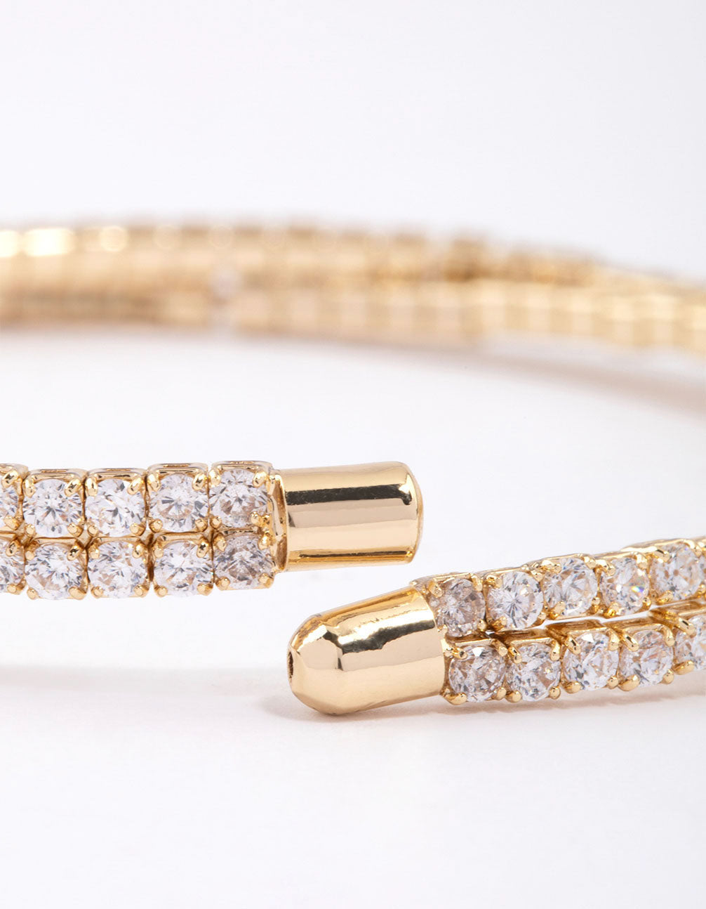 • This simple, gold plated wrist cuff features a twisted cupchain design for added texture in your stack.