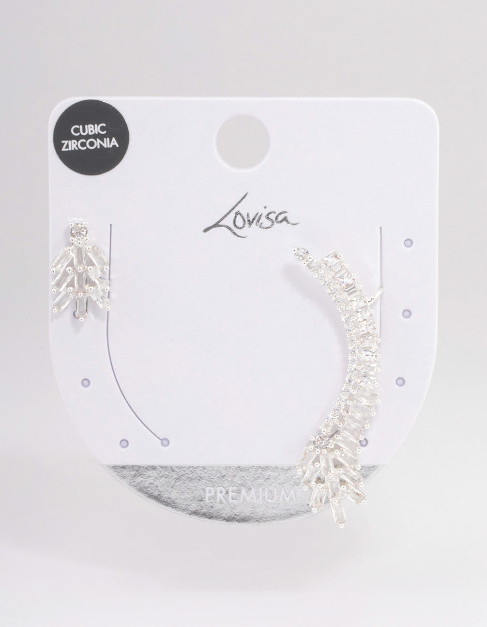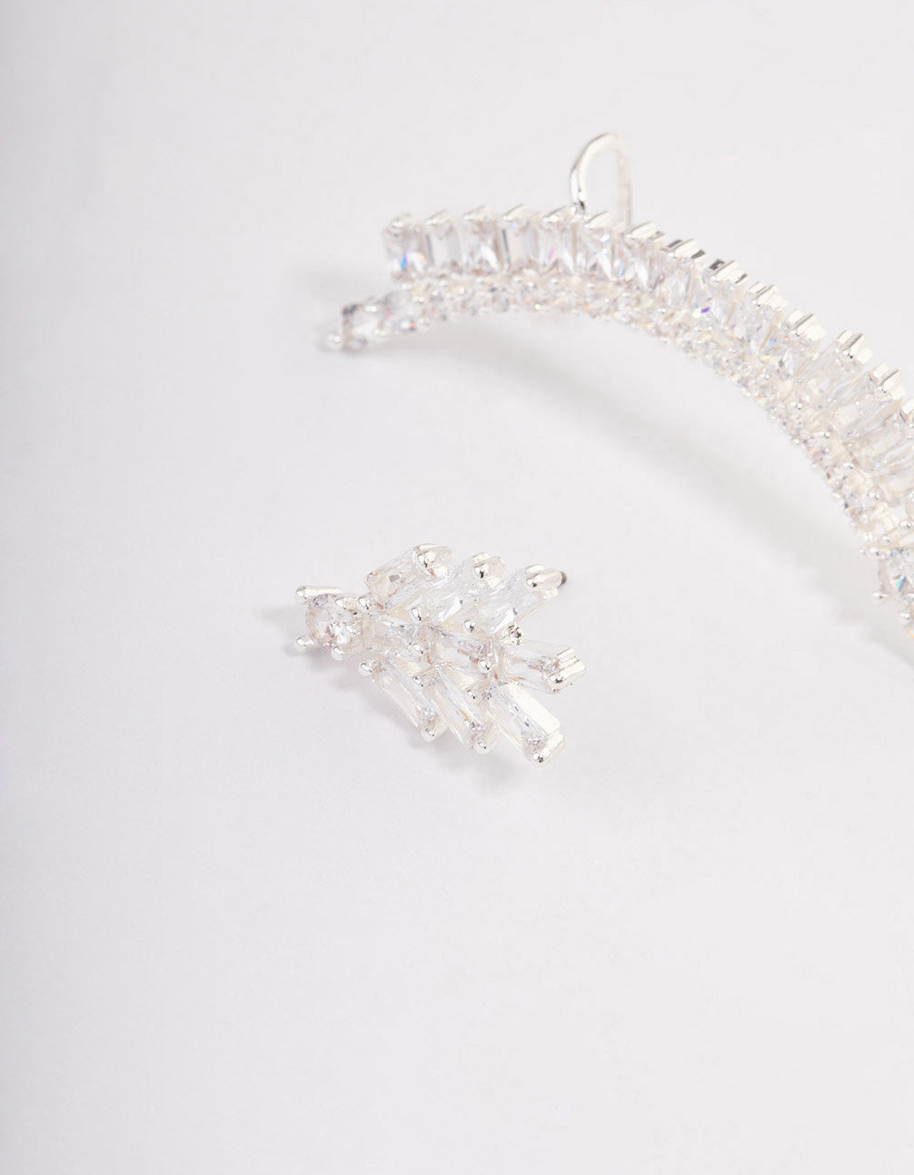 Silver Plated Cubic Zirconia Baguette Cuff Stud Earrings Silver Plated Cubic Zirconia Baguette Cuff Stud Earrings Silver Plated Cubic Zirconia Baguette Cuff Stud Earrings