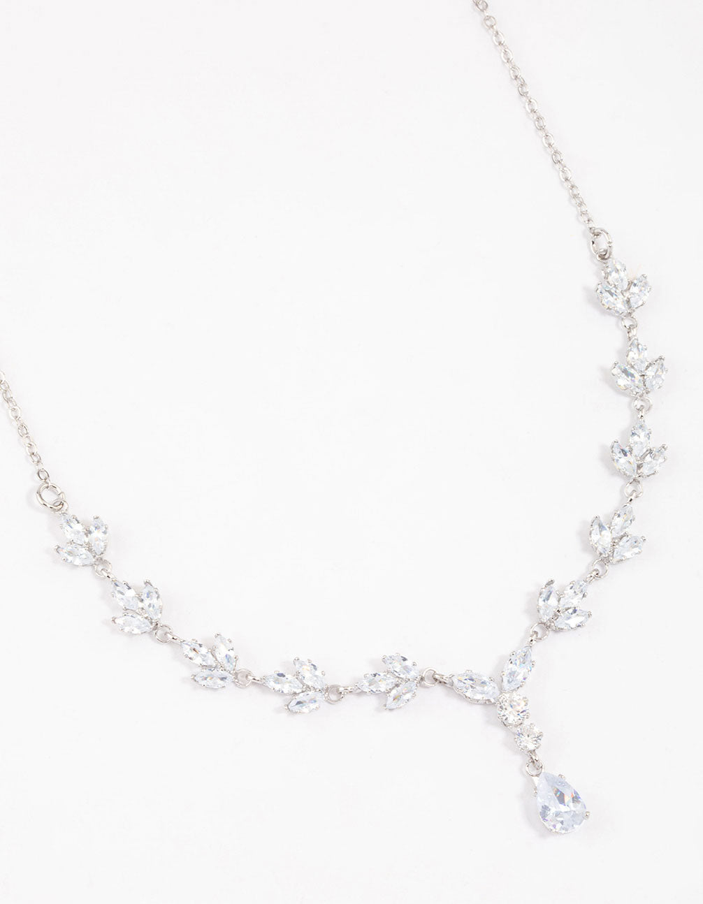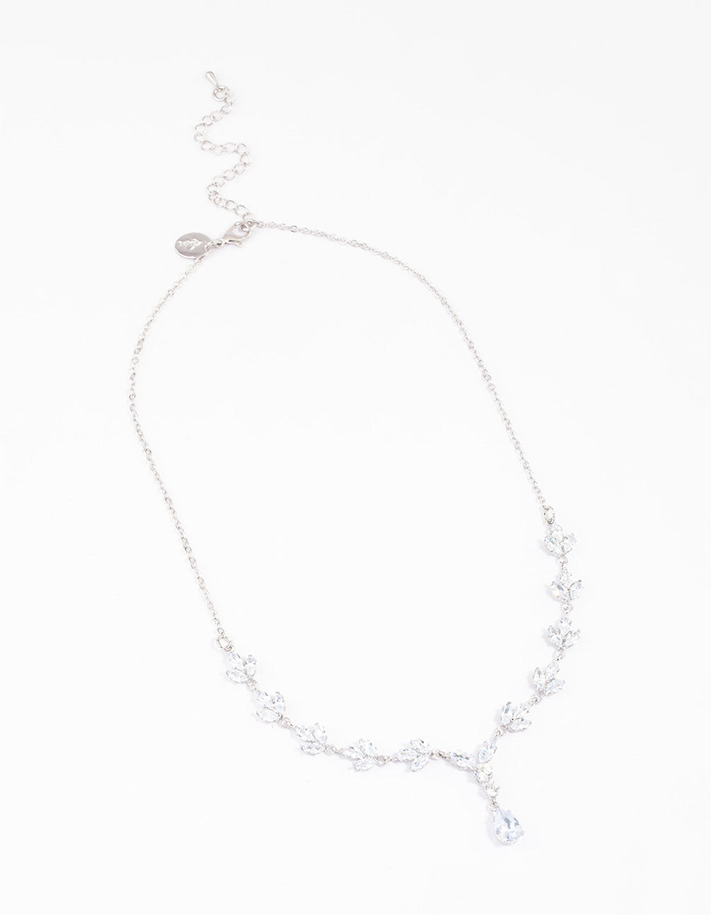 Silver Plated Cubic Zirconia Marquise Vine Y-Shaped Necklace