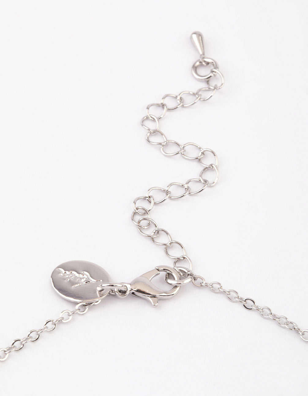 - This simple, silver plated necklace features a Y-shaped design and is encrusted with cubic zirconia crystals for a hint of sparkle.