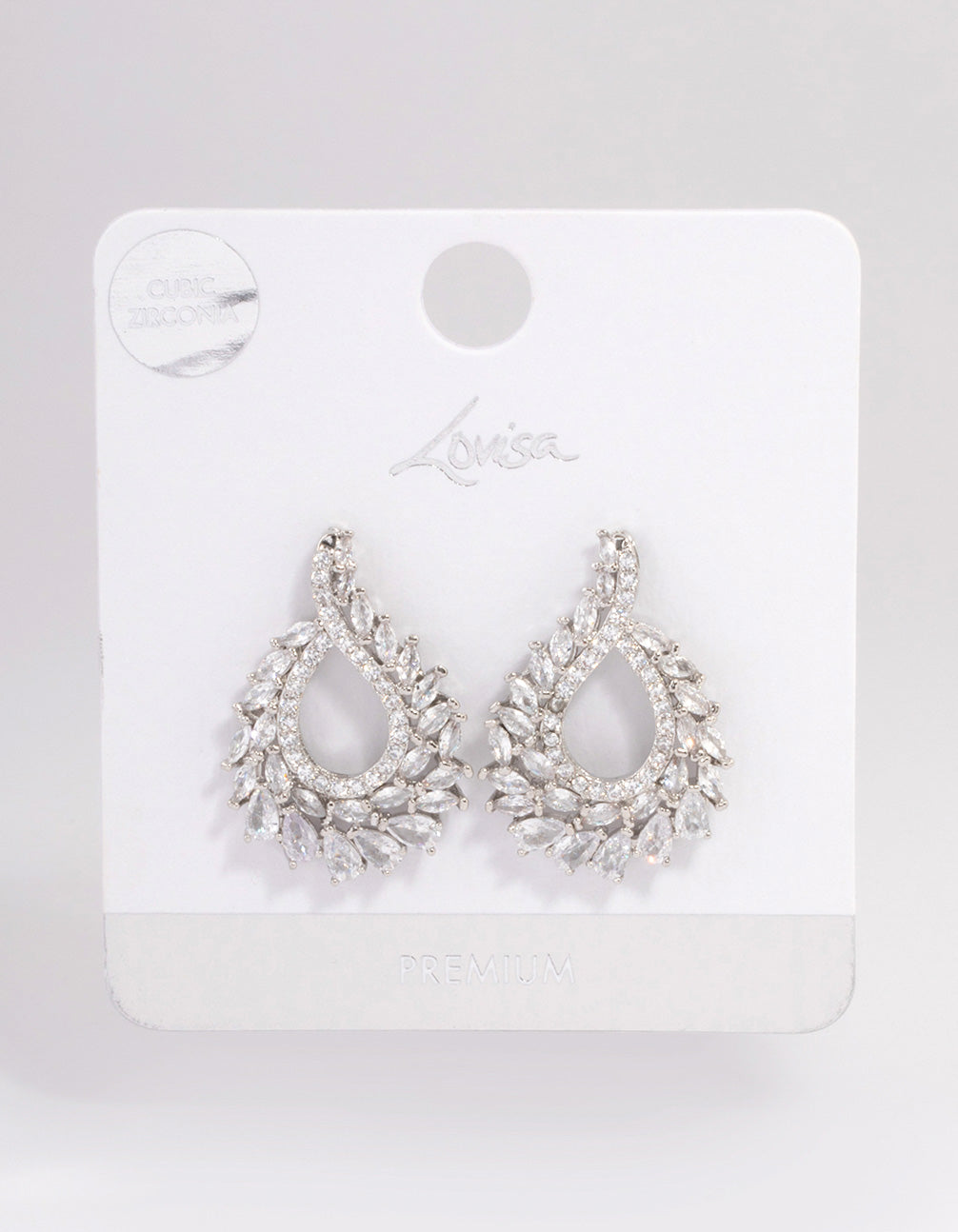 - These silver, cubic zirconia stone swirl earrings are perfect for brides and bridesmaids on the big day.