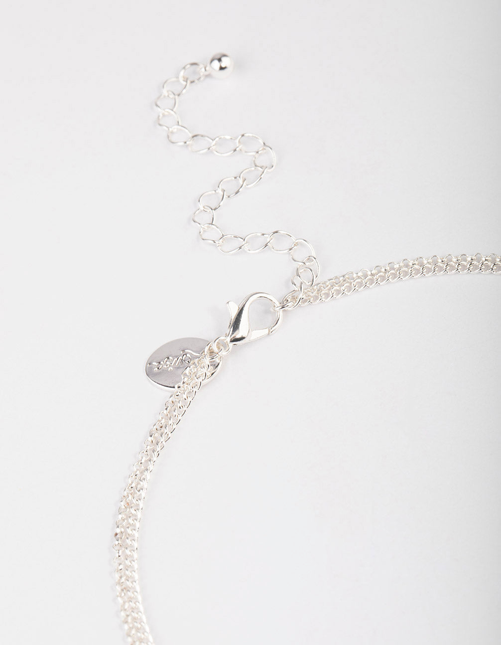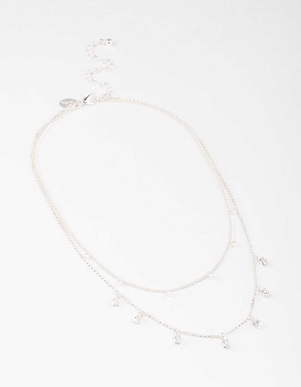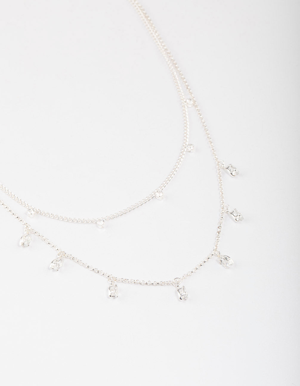 Silver Plated Dainty Cubic Zirconia Drop Layered Necklace