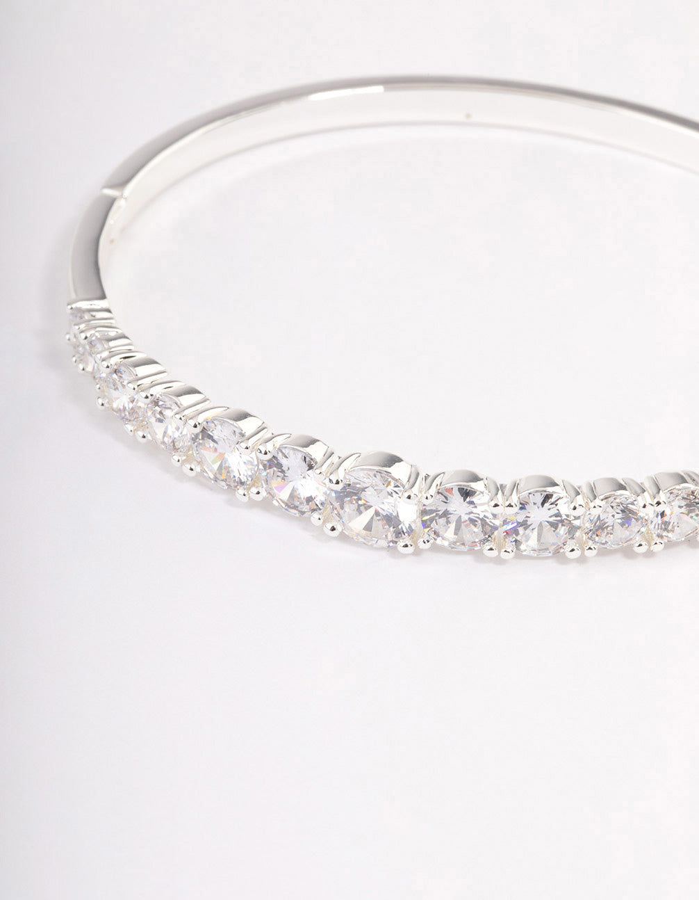 This bangle features a stunning silver setting and features a gradual design, embellished with delicate cubic zirconia crystals.
