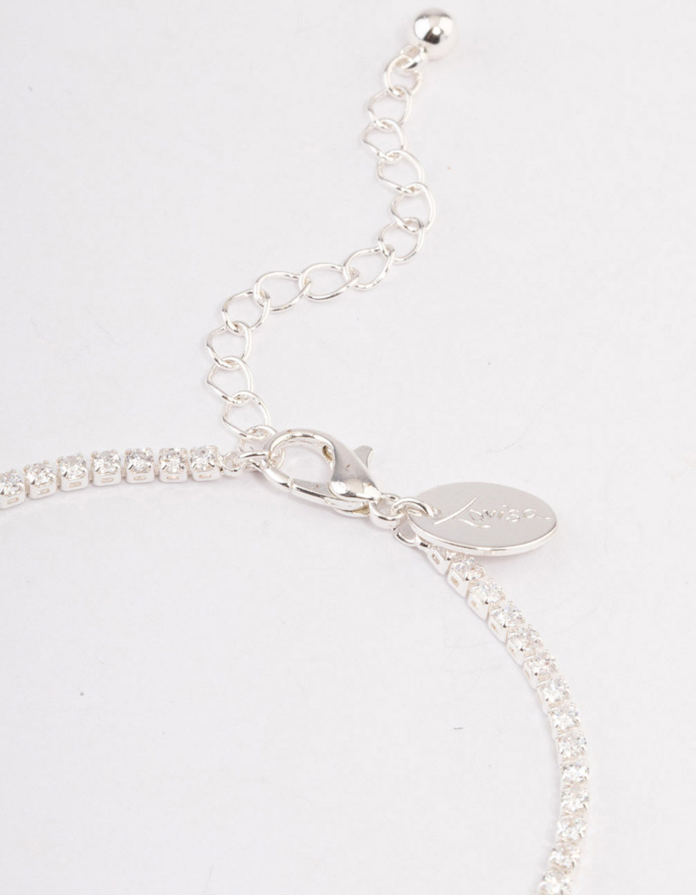 This dainty bracelet features a stunning silver setting with a tennis bracelet silhouette.