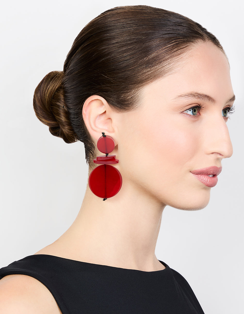 Brighten up your look with these Red Layered Disc Drop Earrings—your new go-to accessory for bold, playful style! These stunning drop earrings feature layered disc shapes in a vibrant red hue, creating a dynamic and eye-catching design that's perfect for adding a splash of colour to any outfit. Whether you're heading out for brunch with friends, hitting a party, or dressing up a casual day look, these earrings are versatile enough to suit any occasion. Pair them with a flowy dress for a fun, boho vibe or a sharp blazer for a contemporary edge. With their lightweight design and bold aesthetic, these earrings are perfect for anyone who loves statement jewellery that's easy to wear.