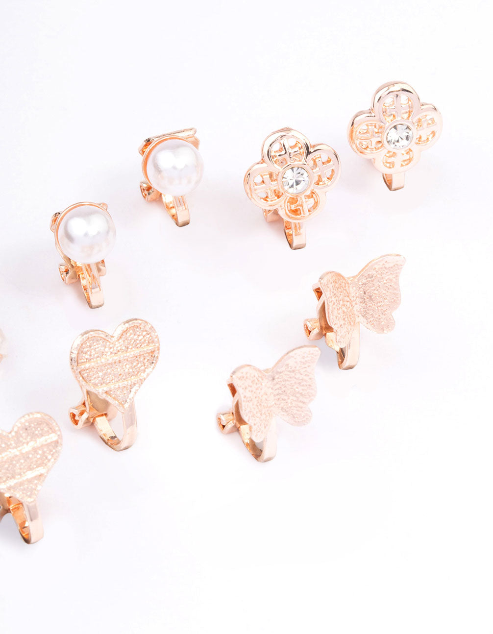 Rose Gold Mixed Fan & Pearl Drop Earrings 5-Pack