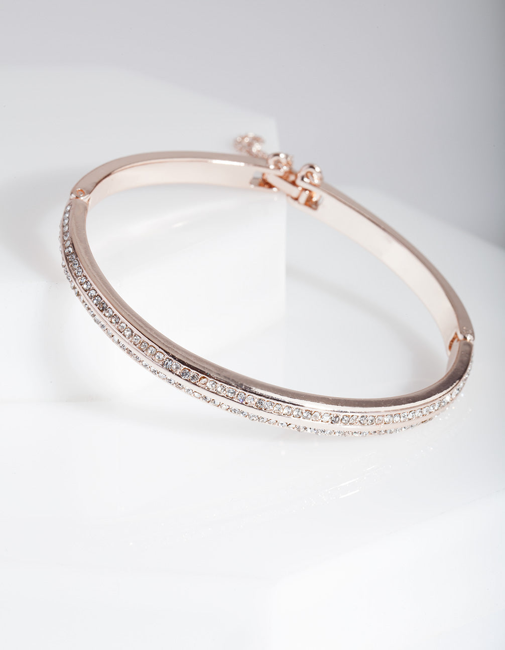 Add a touch of glamour to your wrist with this rose gold-tone hingle bracelet boasting a double row of diamantes.