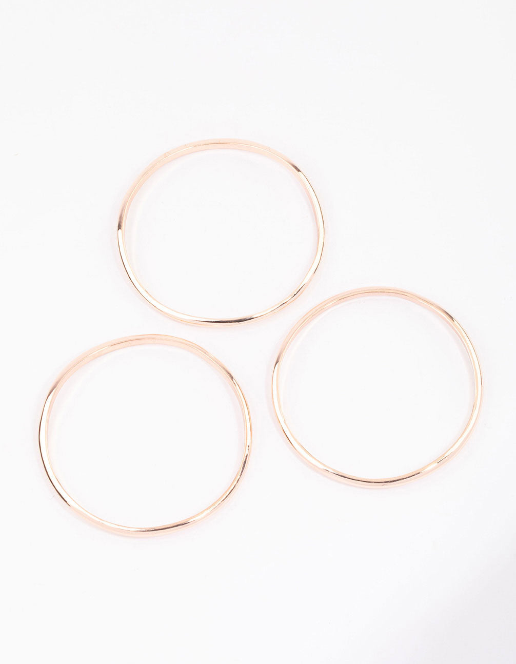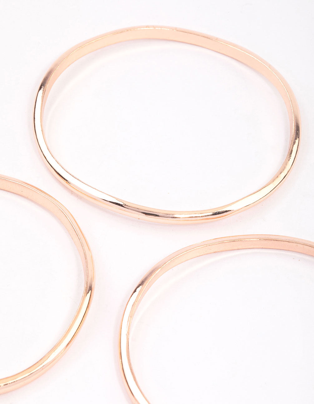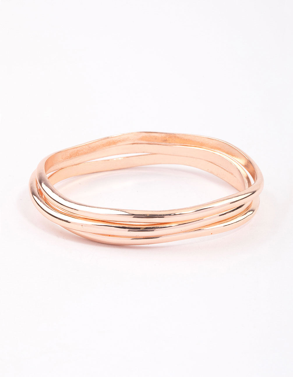 - This rose gold bangle pack contains three individual bangles, designed to be layered together for a stacked look.