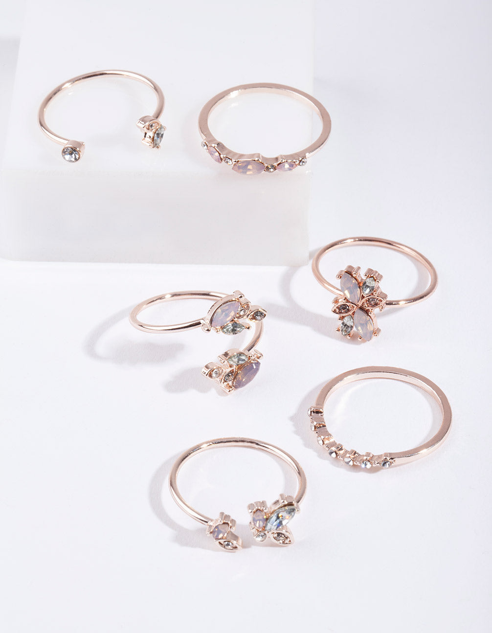 Rose Gold Floral Gem Ring Pack Rose Gold Floral Gem Ring Pack