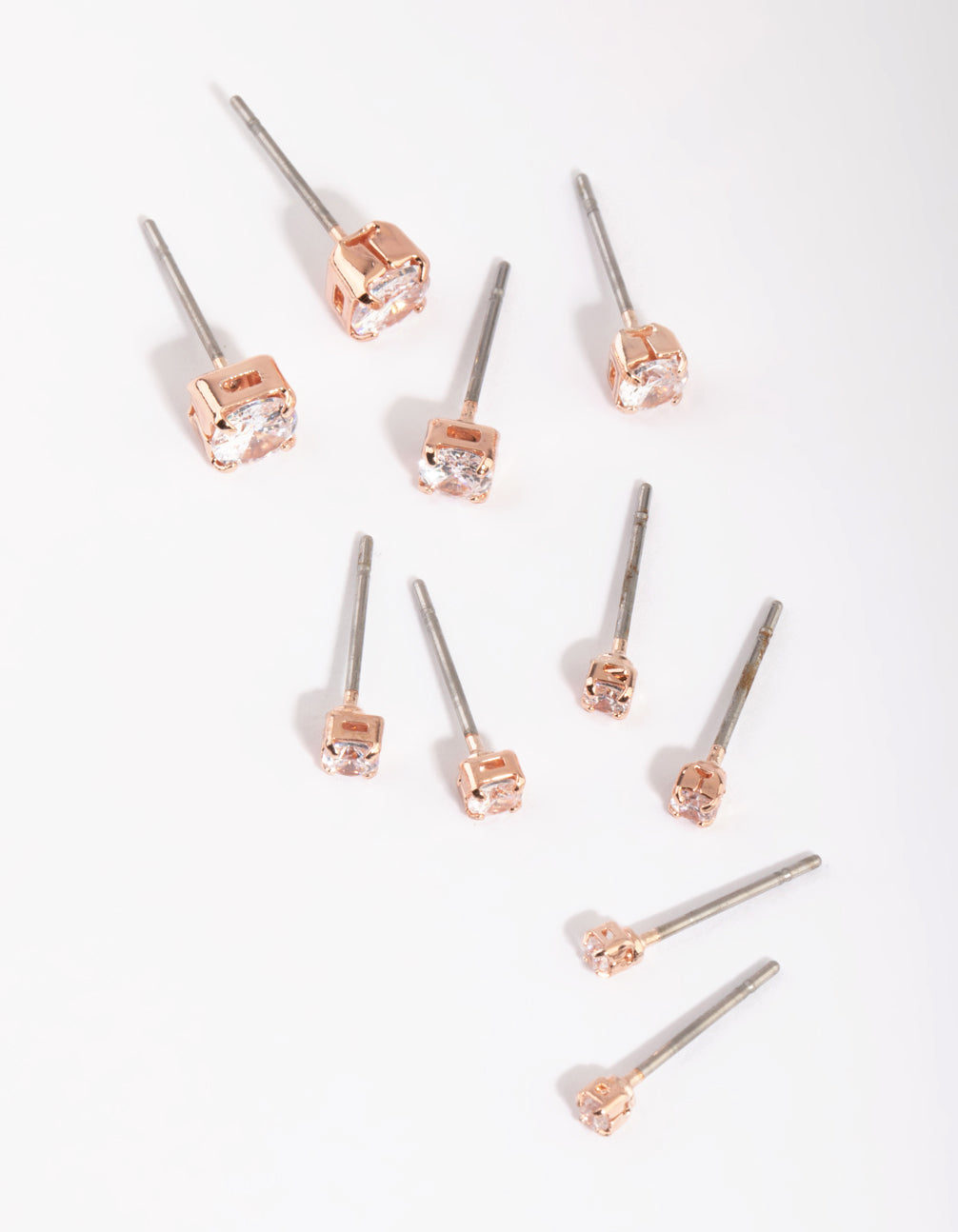 Rose Gold Diamante Stud Earring Pack