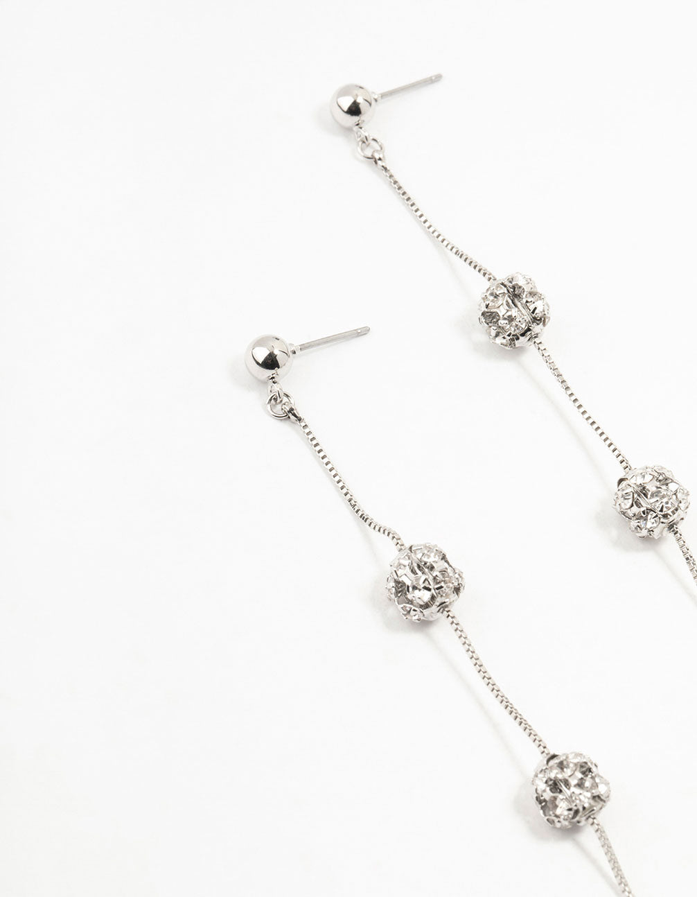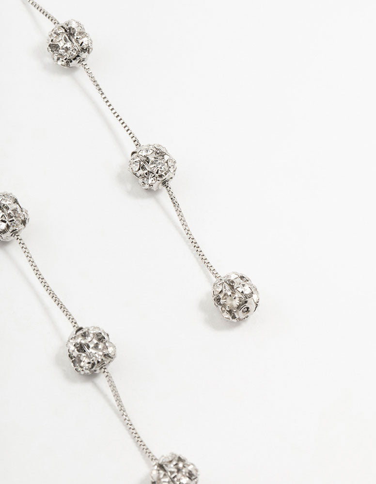 Illuminate your look with these radiant silver earrings featuring a triple row of sparkling crystal balls. Their elegant drop design adds instant glamour, transforming any outfit from everyday to extraordinary.