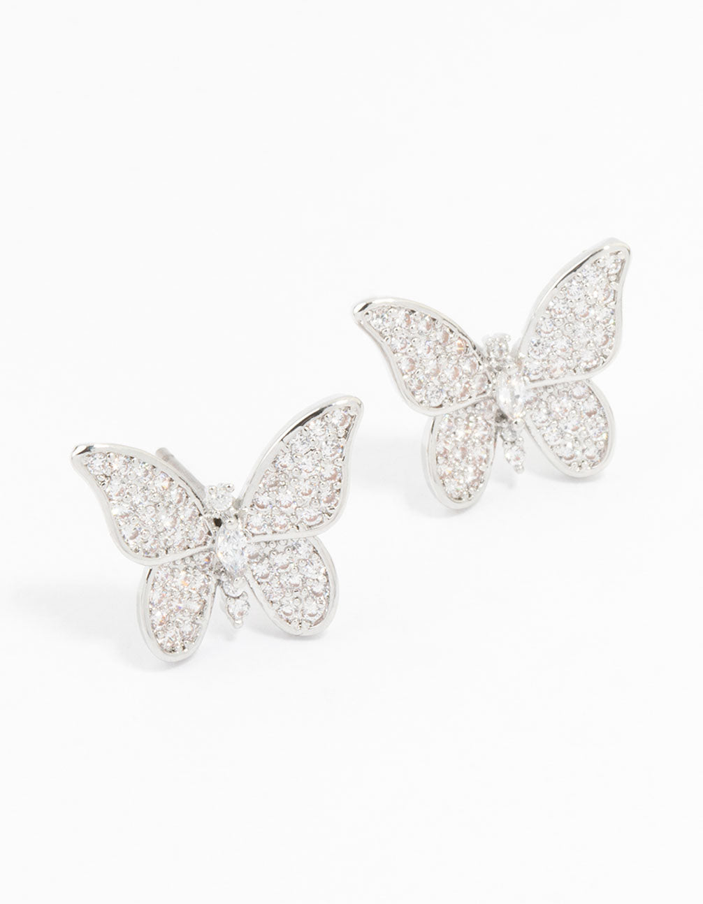 Silver Cubic Zirconia Butterfly Stud Earrings
