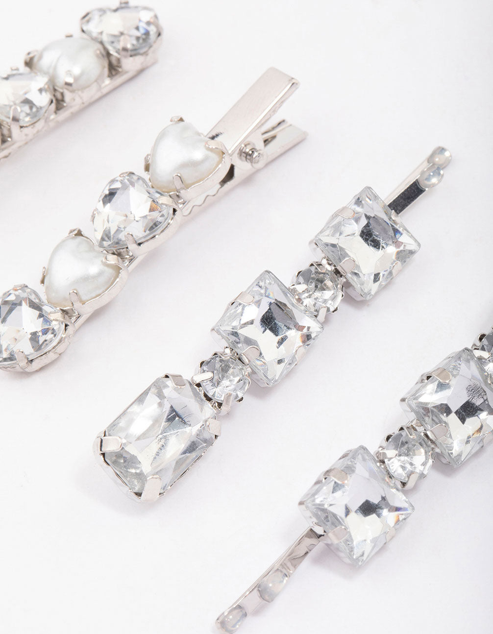 Silver Diamante & Pearl Heart Hair Clip 4-Pack