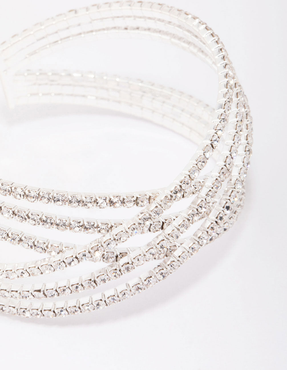 Add a touch of sparkle to your stack with this silver wrist cuff. This cuff features a unique, twisted design encrusted with mini diamantes for a glamorous finish.