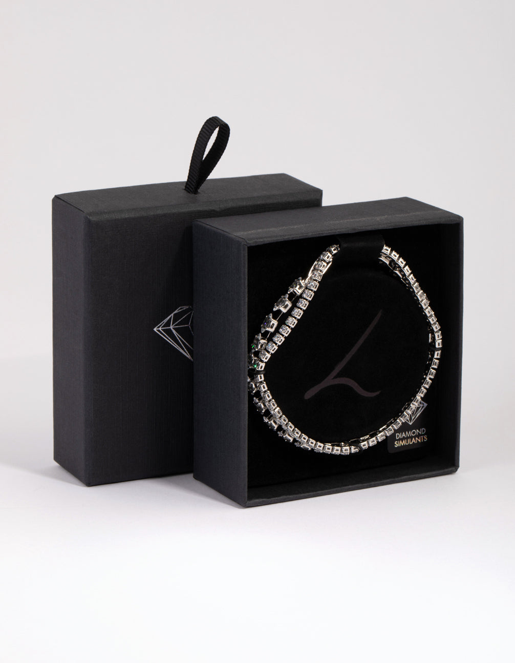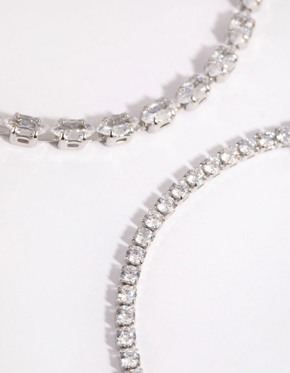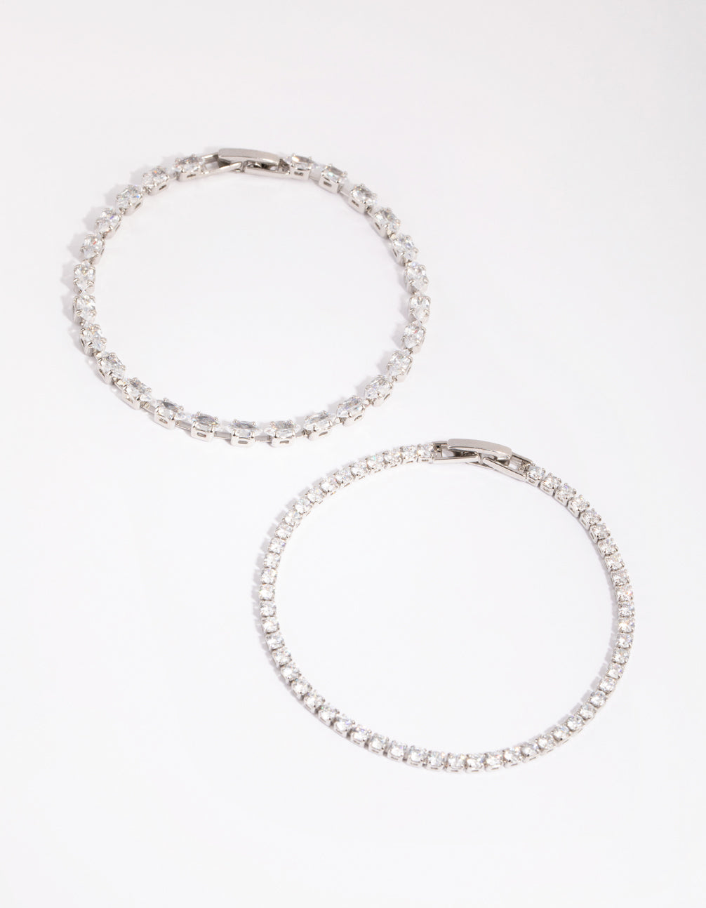 Silver Diamond Simulant Mixed Stone Bracelet Set