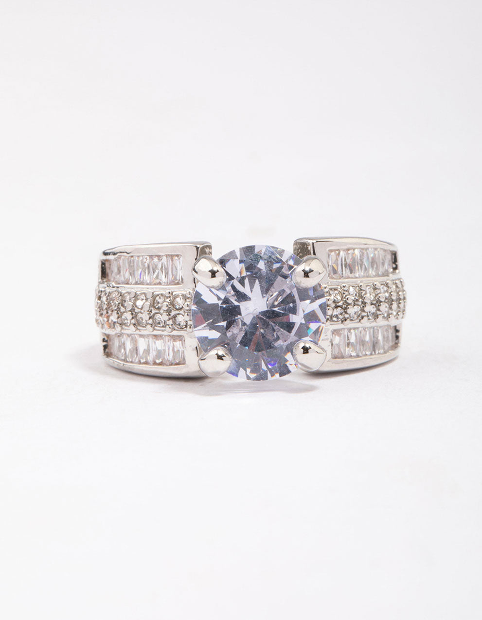 Spice up your stack with this stunning, silver-toned ring. This cocktail ring features a thick band, adorned with a square-shaped crystal in the centre. Perfect for adding a hint of glamour to your look!