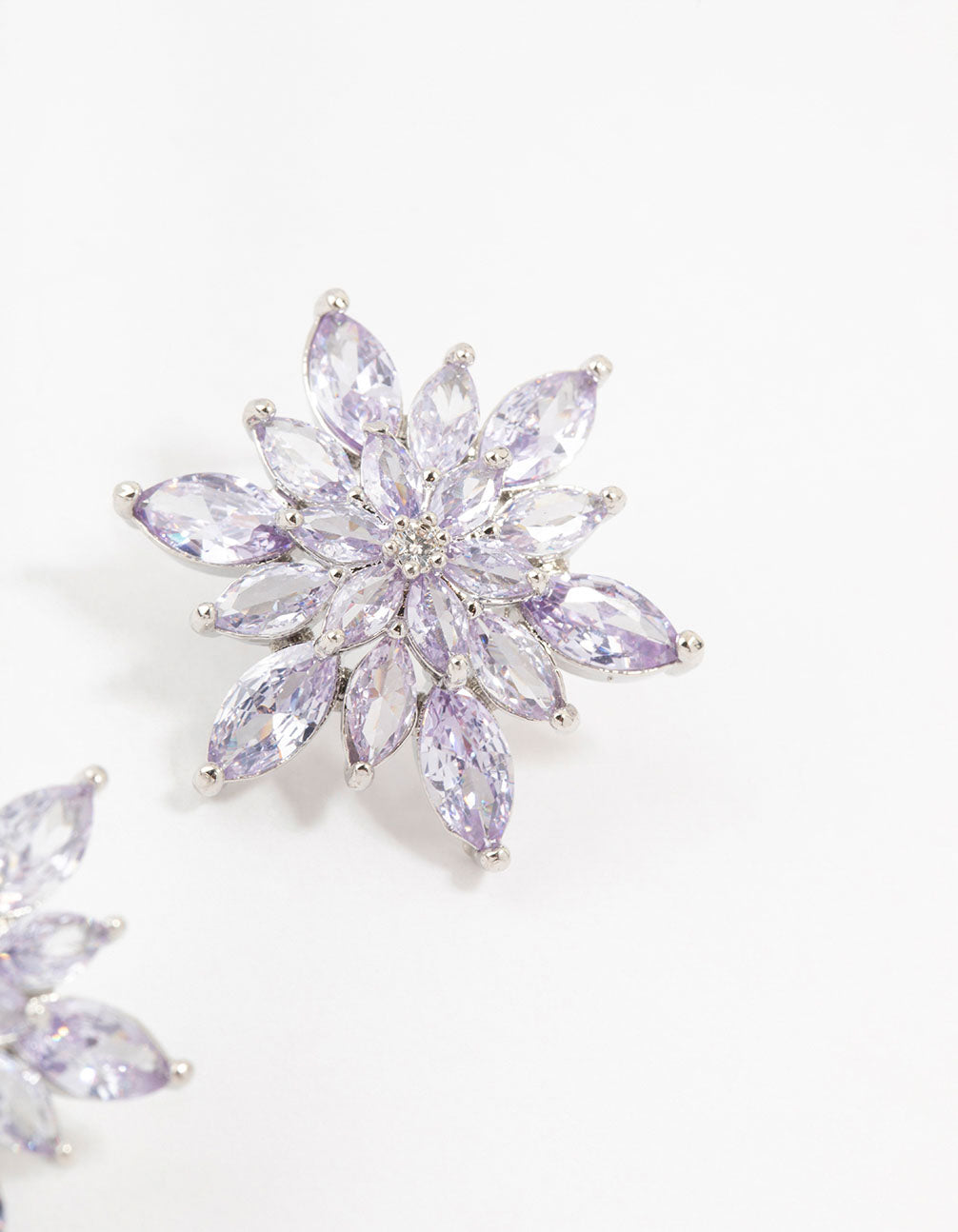 Silver Purple Cubic Zirconia Flower Stud Earrings