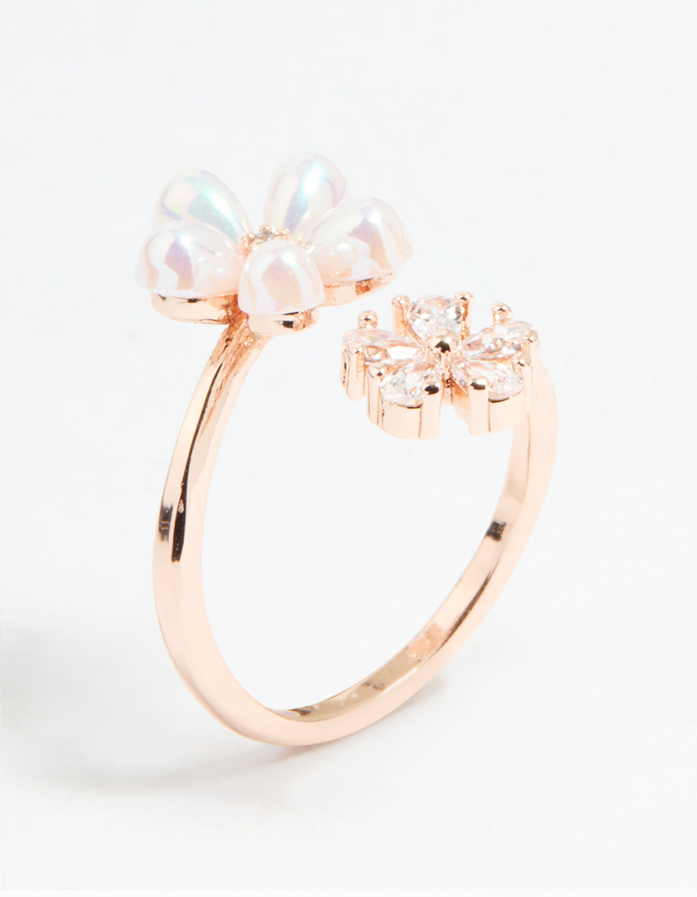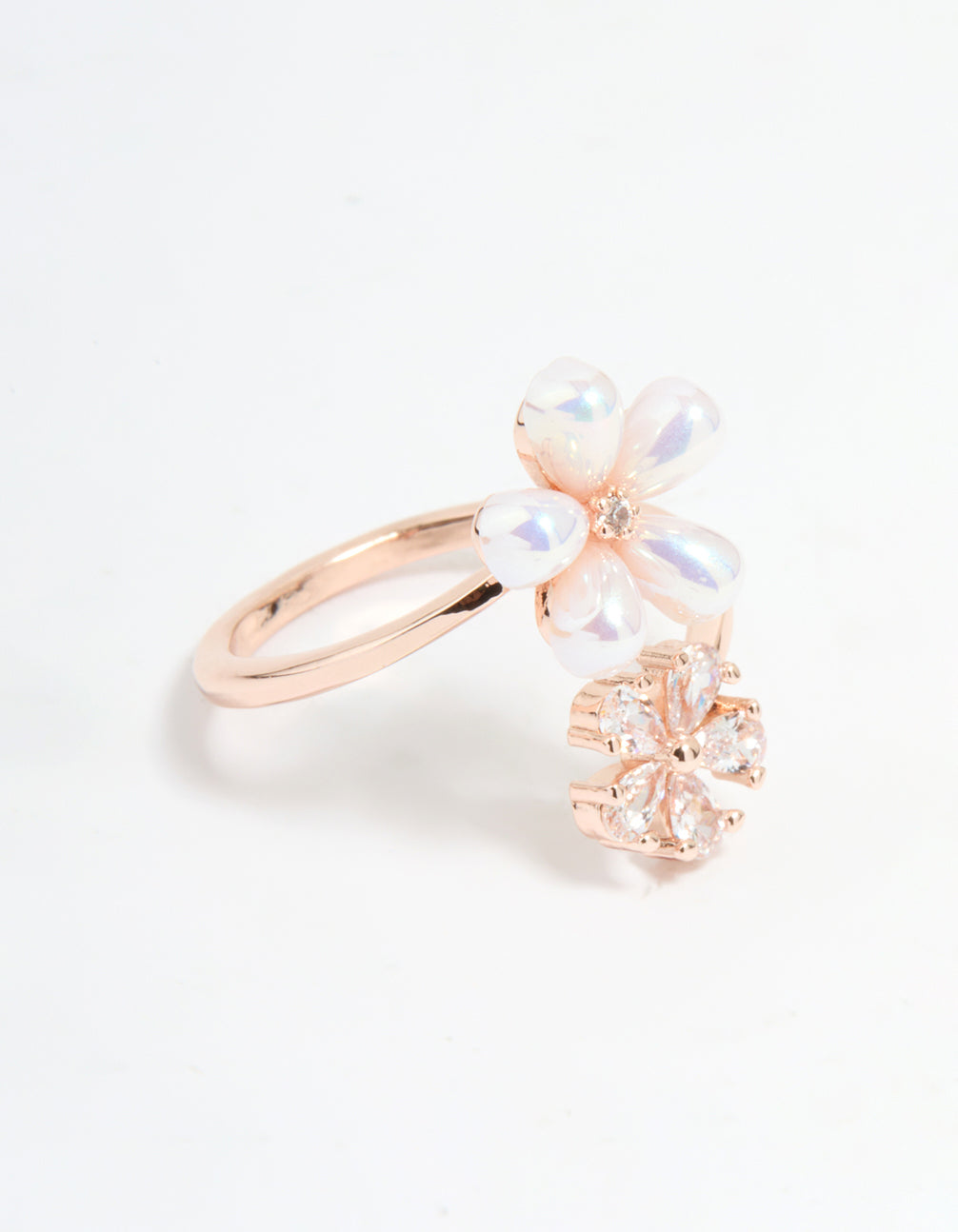 Rose Gold Cubic Zirconia Bubble Flower Wrap Ring