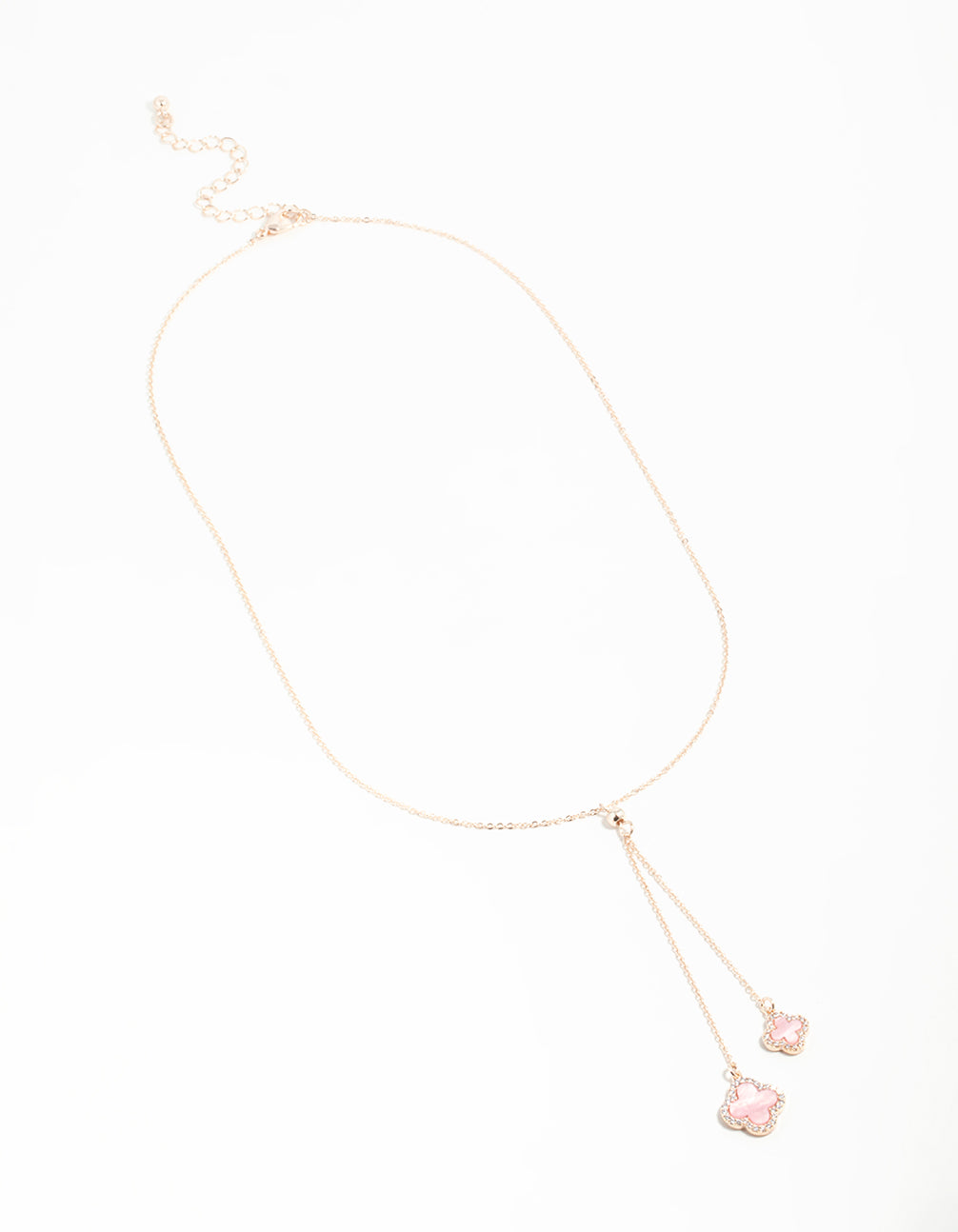 Rose Gold Cubic Zirconia Pink Flower Y-Necklace