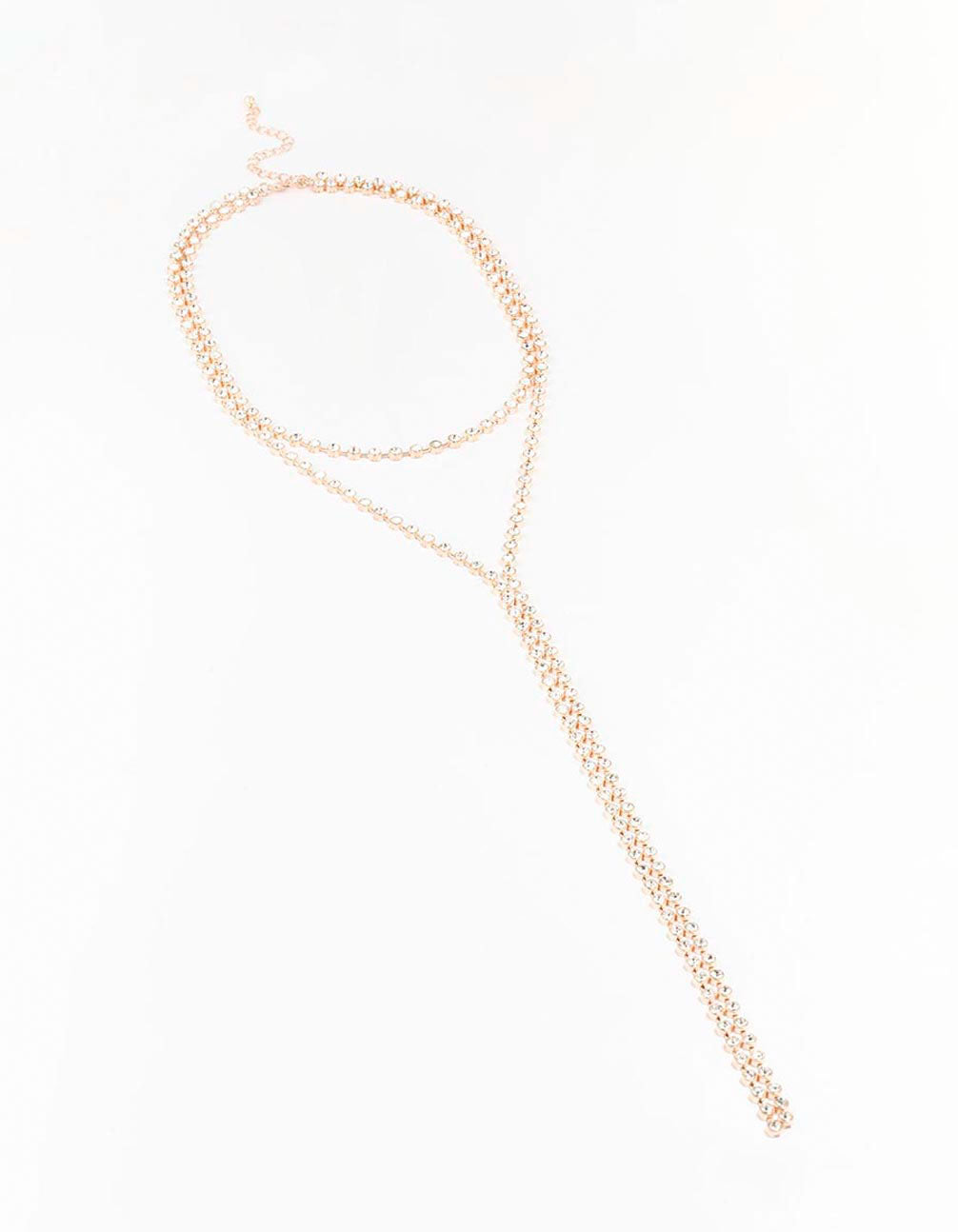 Bring on the glamour with this stunning rose gold chain! Adorned with dazzling round diamante stones and featuring an elegant lariat design, it adds simple, sparkly glamour to any outfit—from day to night.