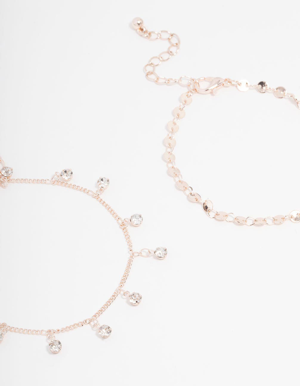 Curate the ultimate stack with our selection of rose gold jewellery. This pack includes four dainty chain bracelets, adorned with delicate diamantes and tassels for an embellished look.