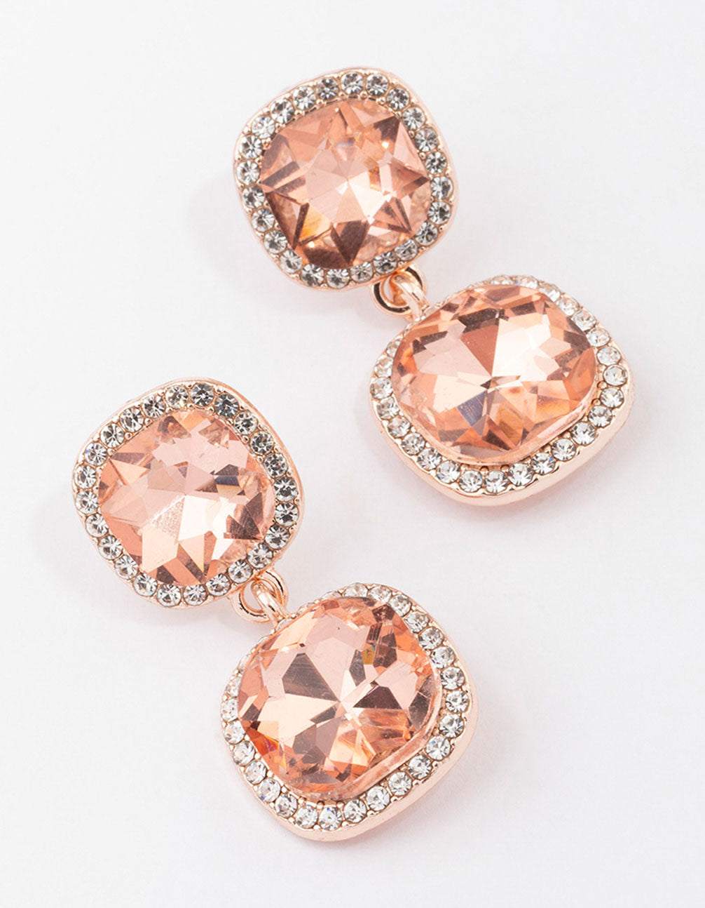 Rose Gold Double Square Halo Drop Earrings