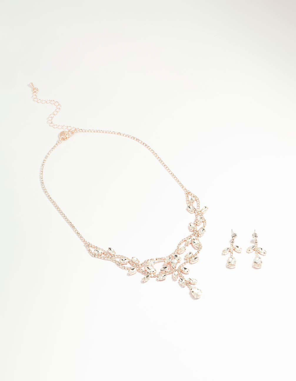 Rose Gold Floral Vine Cascading Necklace & Earrings Set