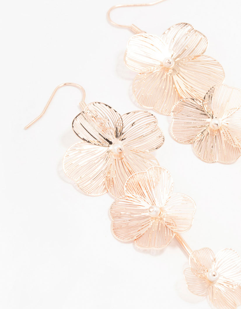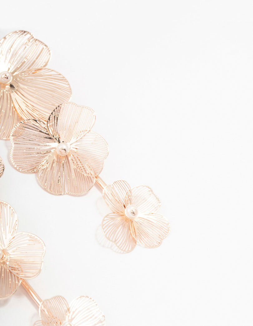 Add instant glam with these stunning drop earrings. Featuring a chic rose gold-toned laser-cut flower design, they bring an enchanting touch and a beautiful floral flair to any look.