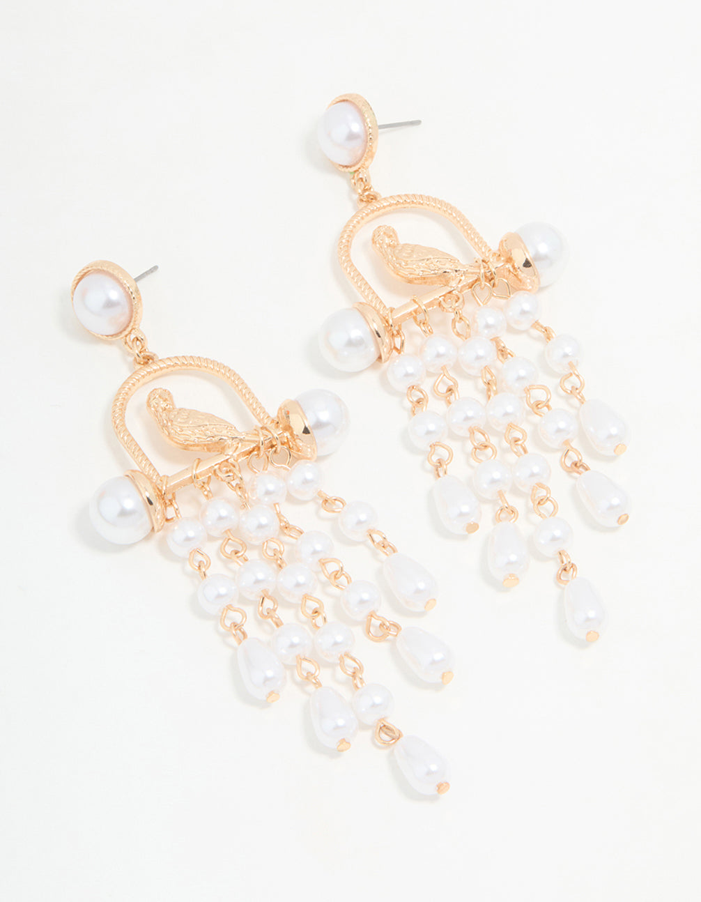 Rose Gold Pearl Beaded Waterfall Drop Earrings