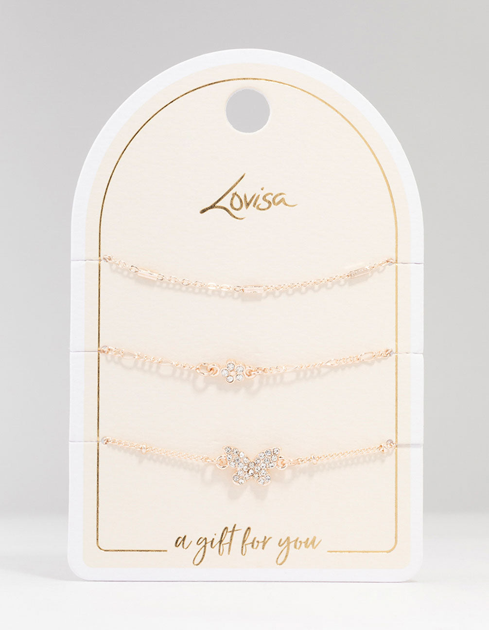 • Rose Gold Pretty Butterfly Bracelets 3-Pack - link has visual effect only