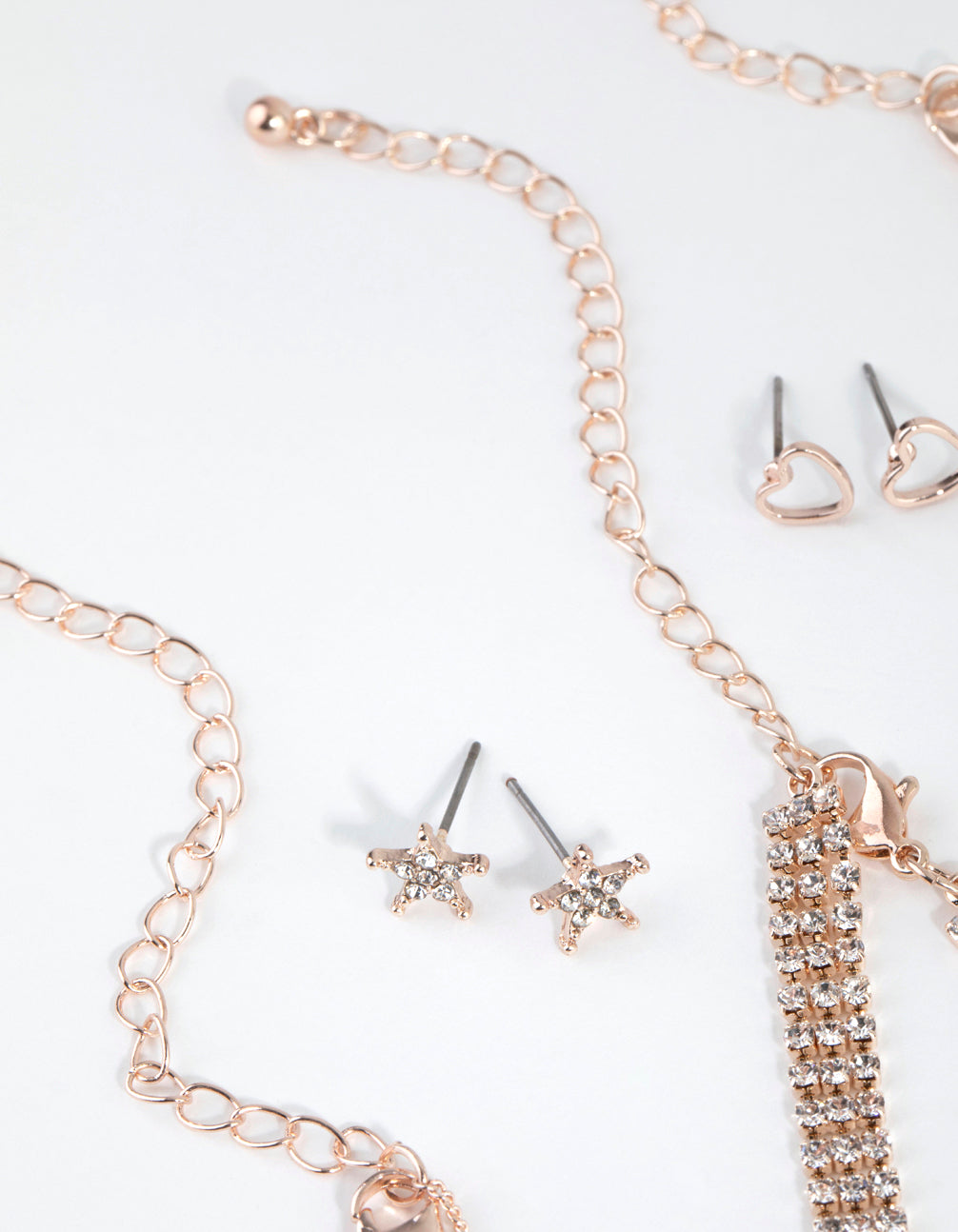 Mix them, match them, stack them! This pack includes five pairs of chokers and five pairs of stud earrings. Each boasts a different design, which makes them perfect for layering. Get creative!