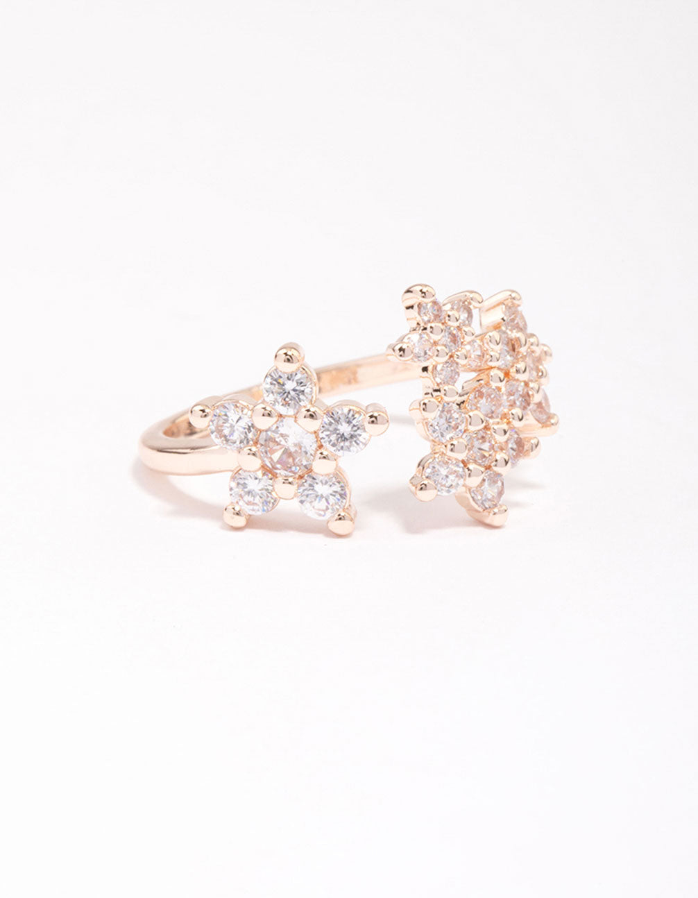 Rose Gold Plated Cubic Zirconia Open Flower Ring