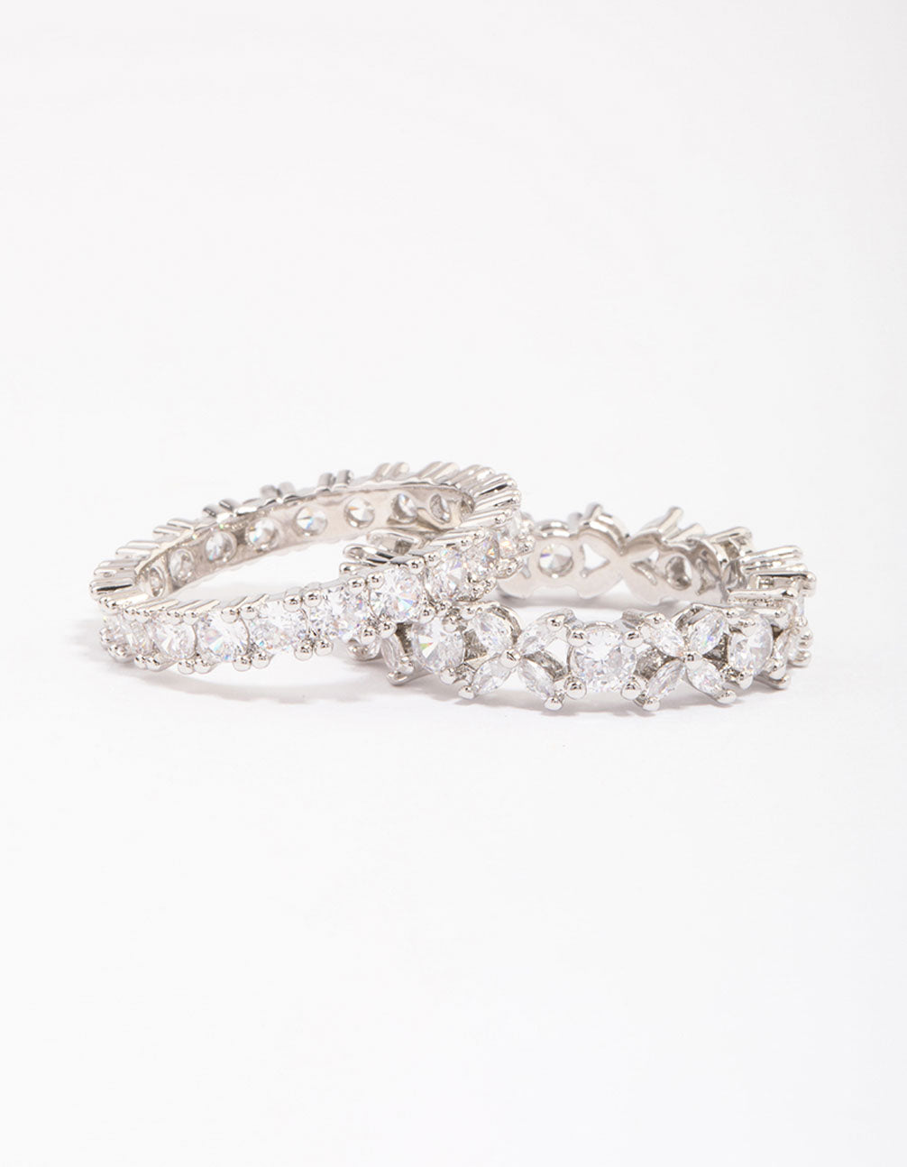 - This double stack ring features a silver-toned setting and floral design, embellished with dazzling, cubic zirconia crystals for a stand-out finish.