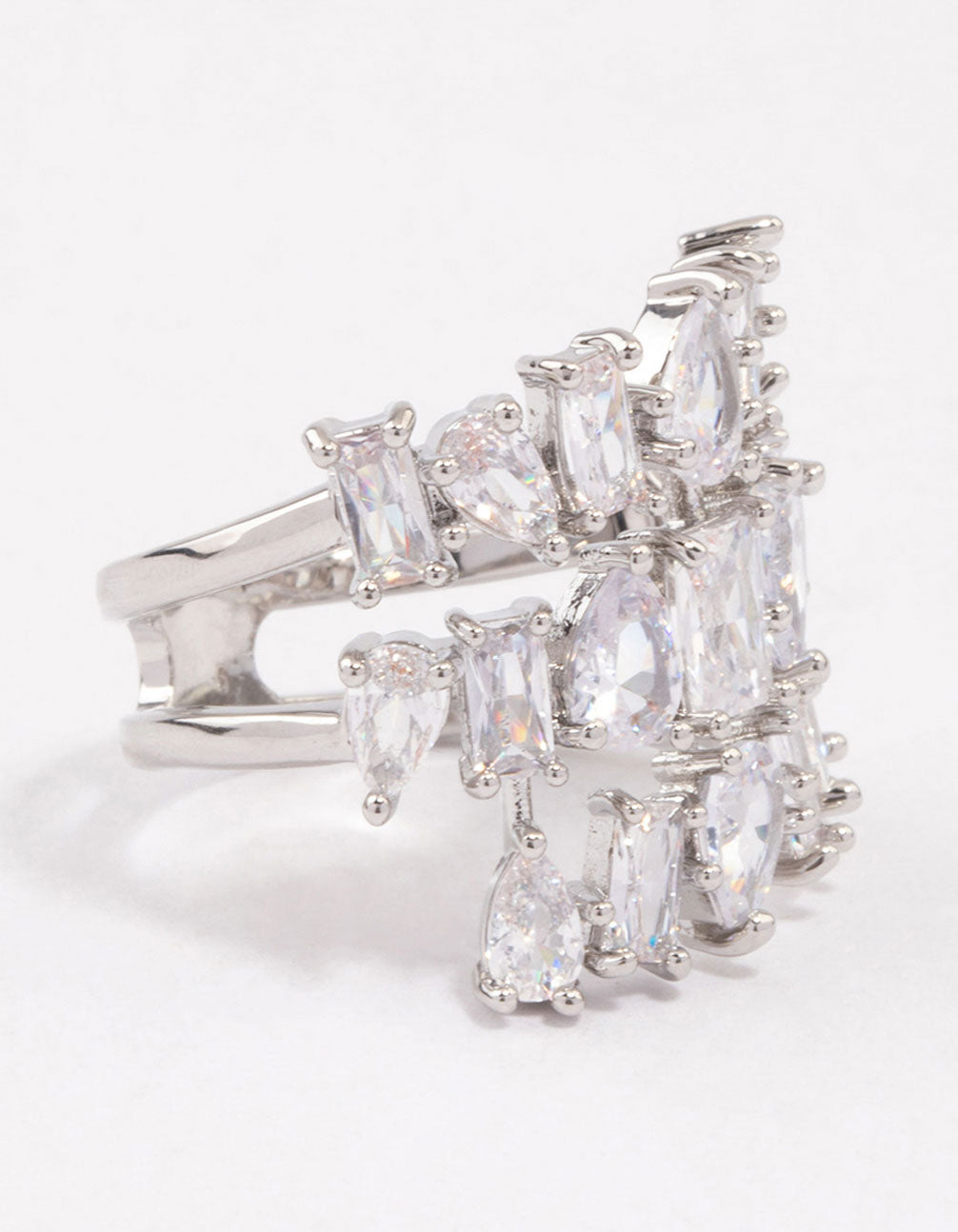 Silver Multi Stone Cubic Zirconia Wrapped Ring